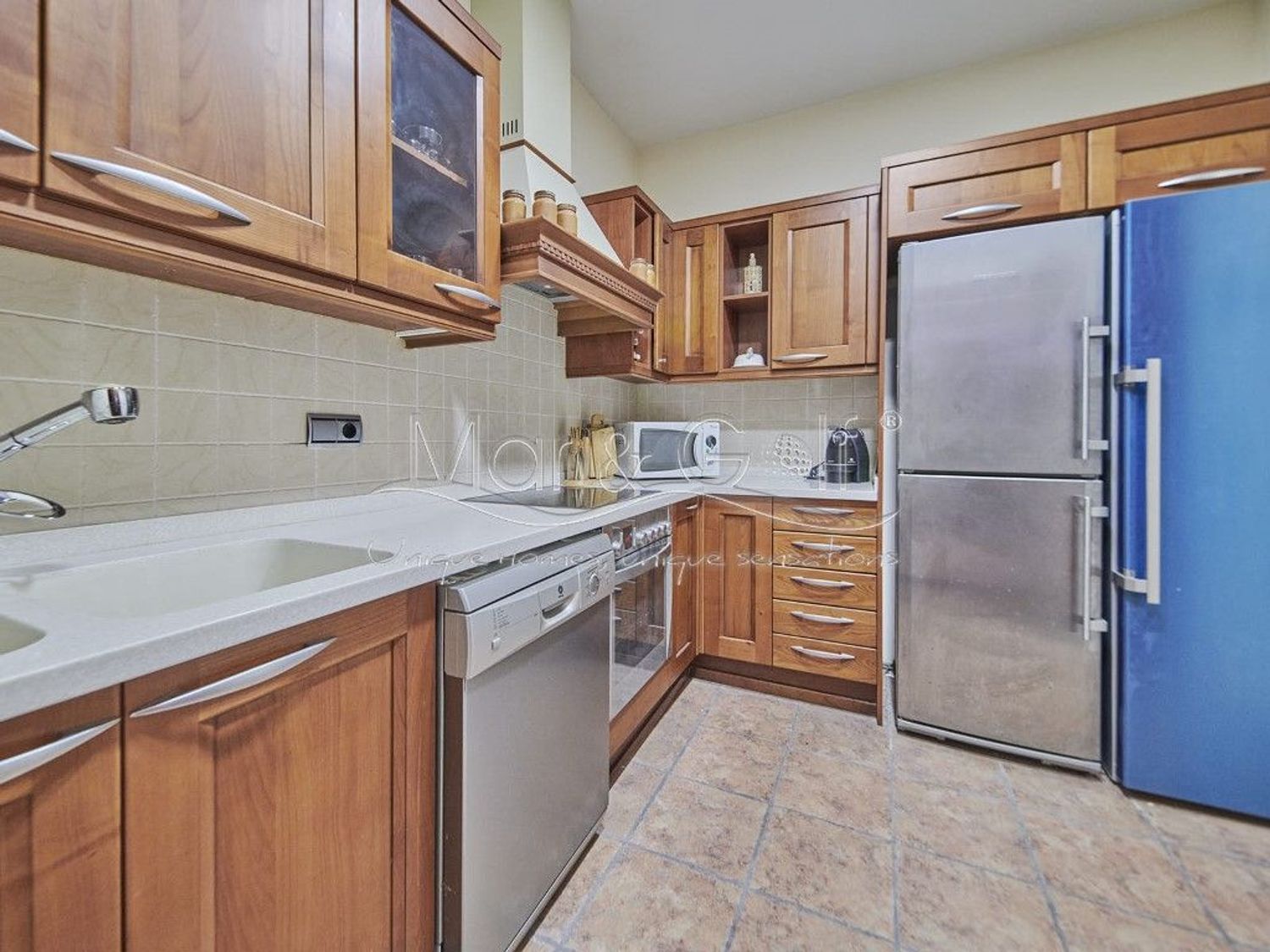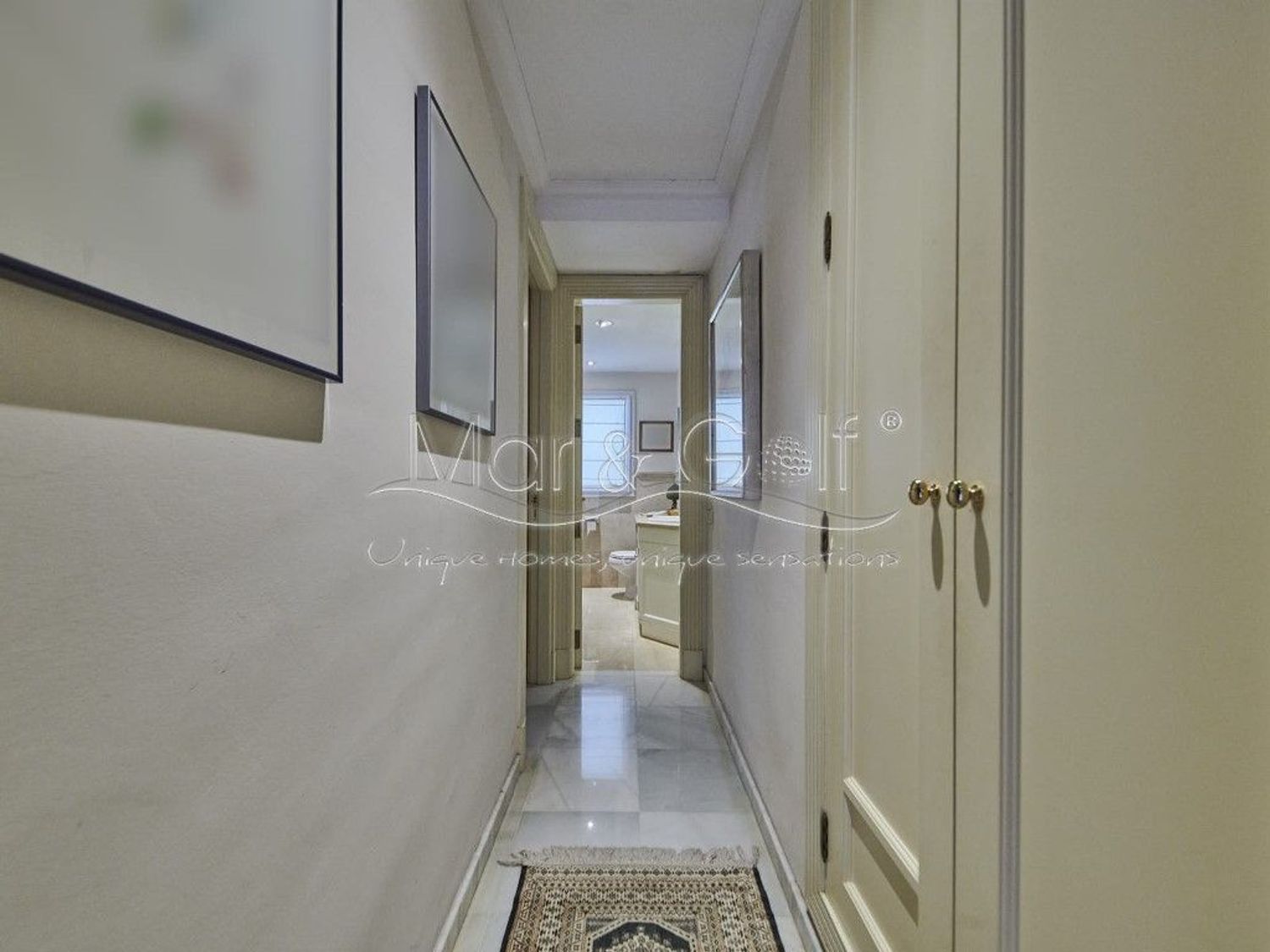 El mármol, presente con exquisito cuidado, actúa como hilo conductor que vertebra la vivienda, guiando de forma natural a través de sus distintas estancias. De este modo, se abre paso un amplio salón bañado por luz natural y con vistas extraordinarias, que conecta con un distinguido comedor y una luminosa cocina de gran belleza. Completa esta planta principal una acogedora sala de estar y un generoso dormitorio, configurando un espacio equilibrado y funcional.