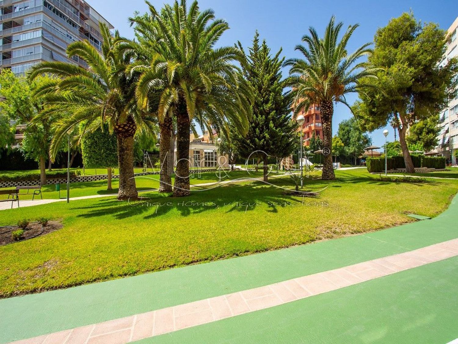 Su ubicación es especialmente destacada, a escasos metros de la parada de TRAM de Avenida de las Naciones, rodeado de todos los servicios y en un entorno residencial tranquilo. A pocos minutos a pie se encuentran tanto la Playa de San Juan como las calas naturales de Cabo de las Huertas.