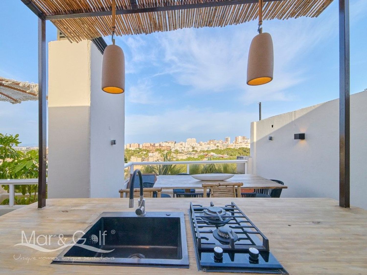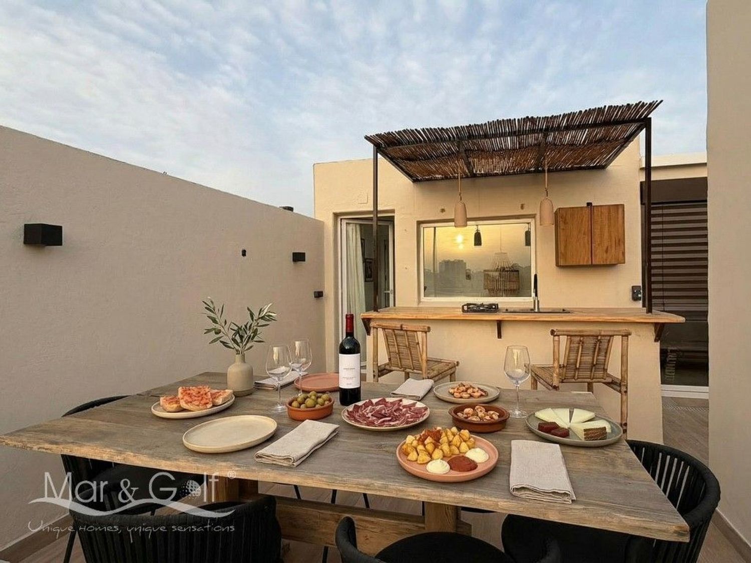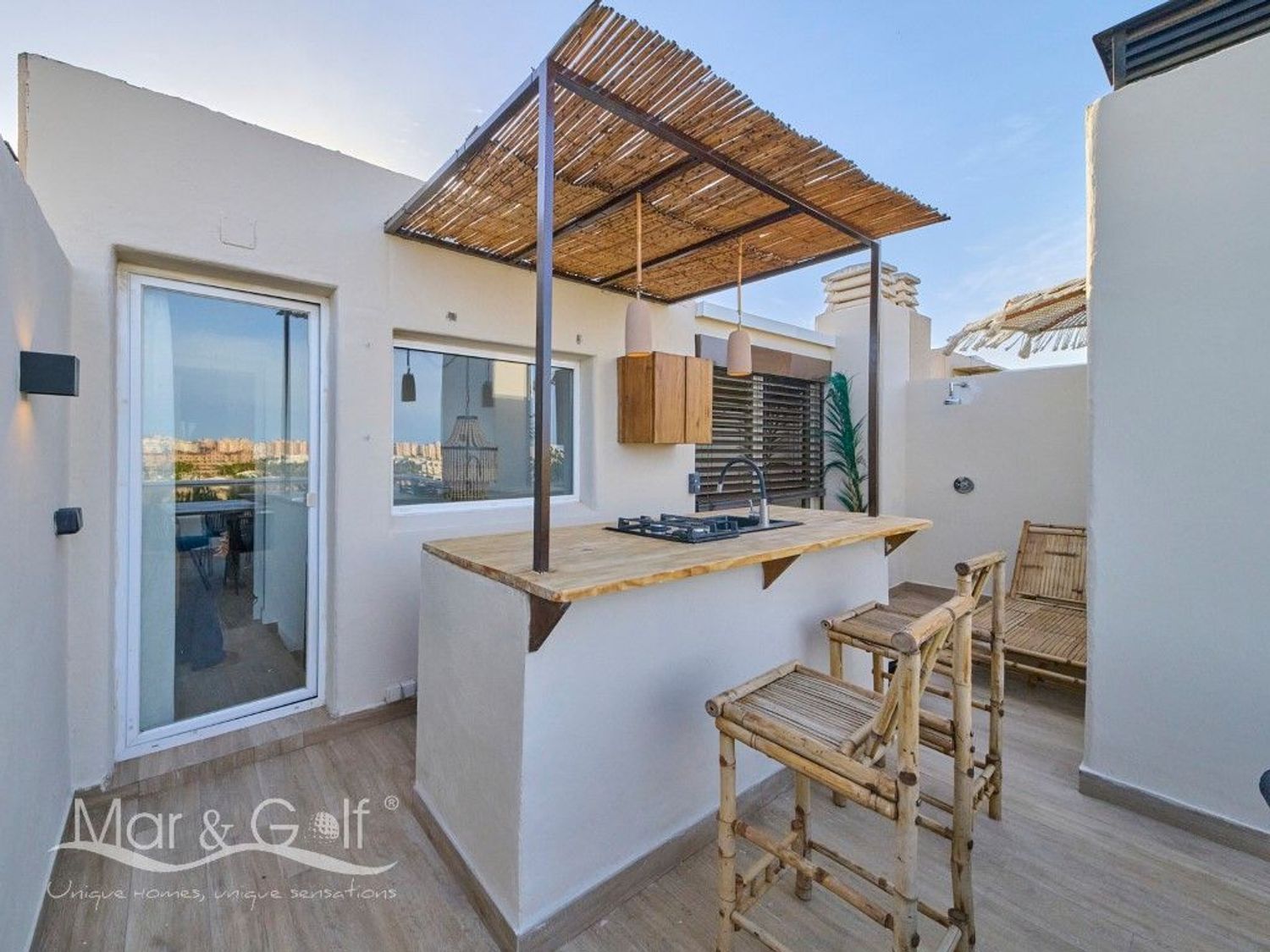 Este exclusivo ático destaca por su rooftop privado diseñado para el disfrute, un espacio único que combina funcionalidad y estilo mediterráneo. Su cocina exterior completamente equipada, cuenta además con una barra, convierte este espacio único en el lugar perfecto para reuniones y momentos al aire libre.