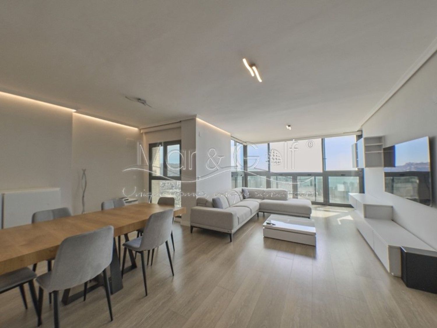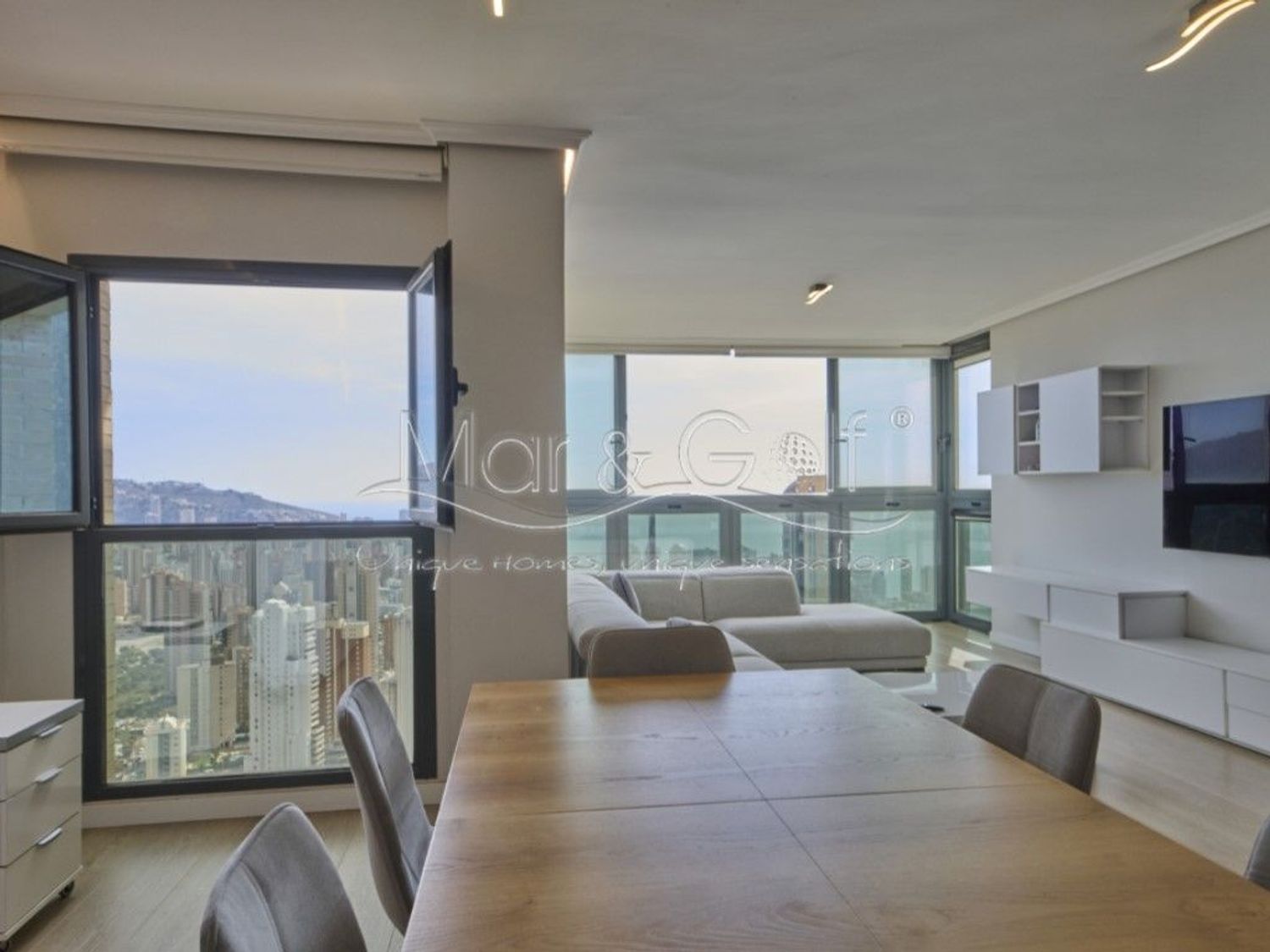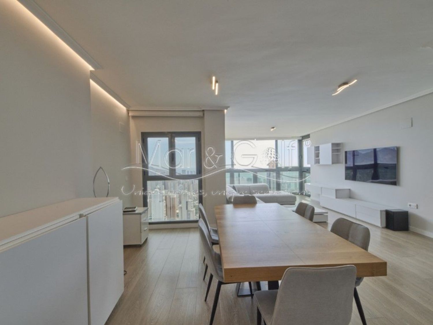Mar & Golf Unique Homes presenta este extraordinario ático dúplex completamente reformado, una propiedad que redefine el concepto de vida urbana en Benidorm, combinando diseño, calidad y vistas privilegiadas en un entorno residencial cuidadosamente mantenido.