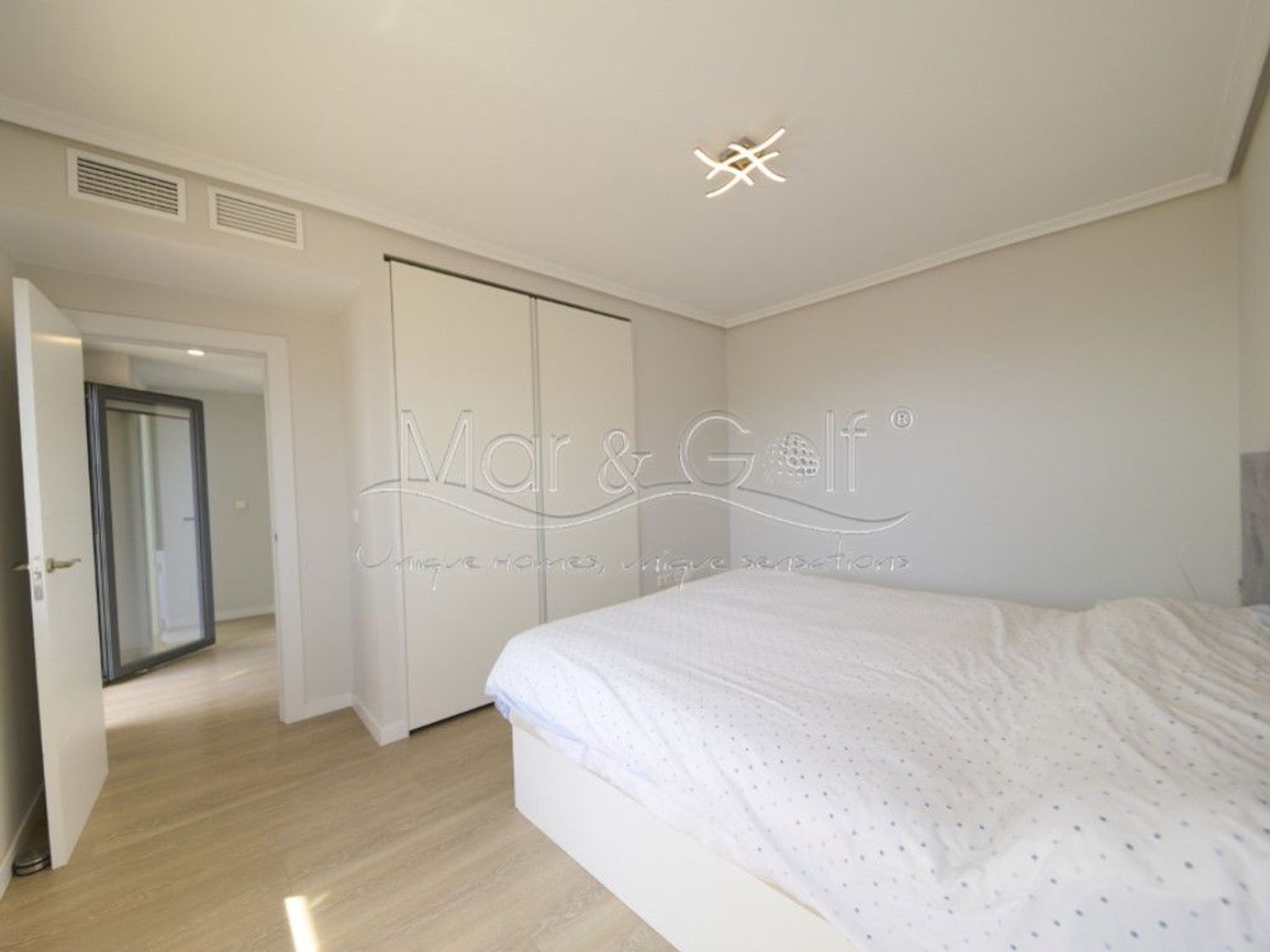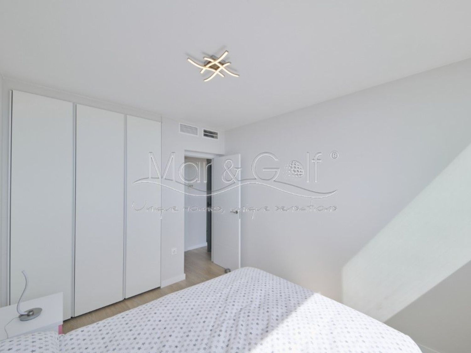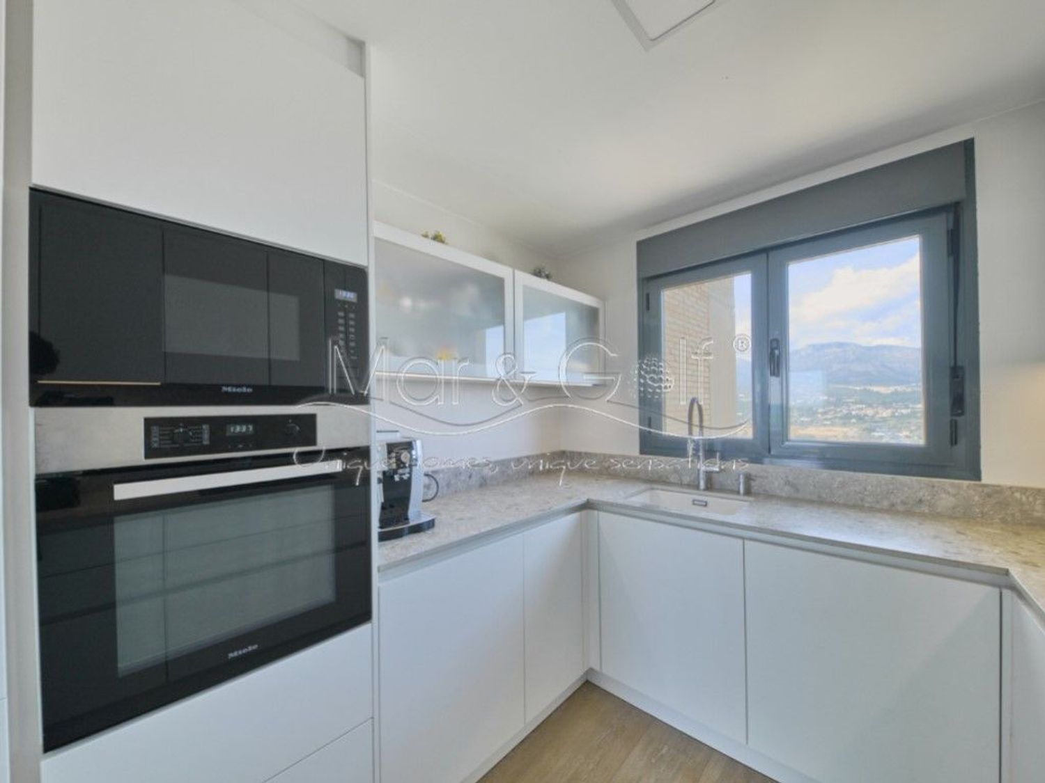 La propiedad ha sido reformada íntegramente con materiales de primer nivel, incorporando cerramientos de aluminio Cortizo con cristal Guardian Sun, suelos de tarima Quick-Step de alta gama, armarios italianos Molteni, mobiliario de diseño y piezas icónicas como el sofá Natuzzi. Los baños, equipados con firmas como Roca y Grohe, reflejan un cuidado excepcional por el detalle.