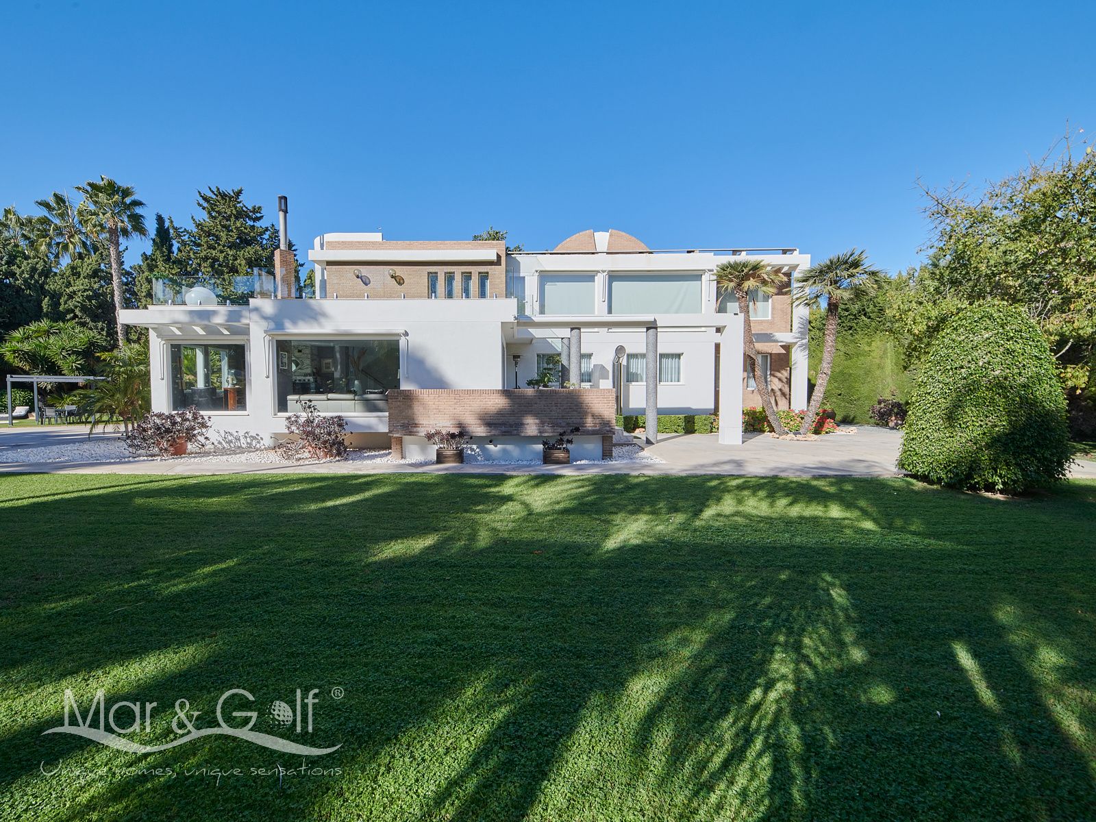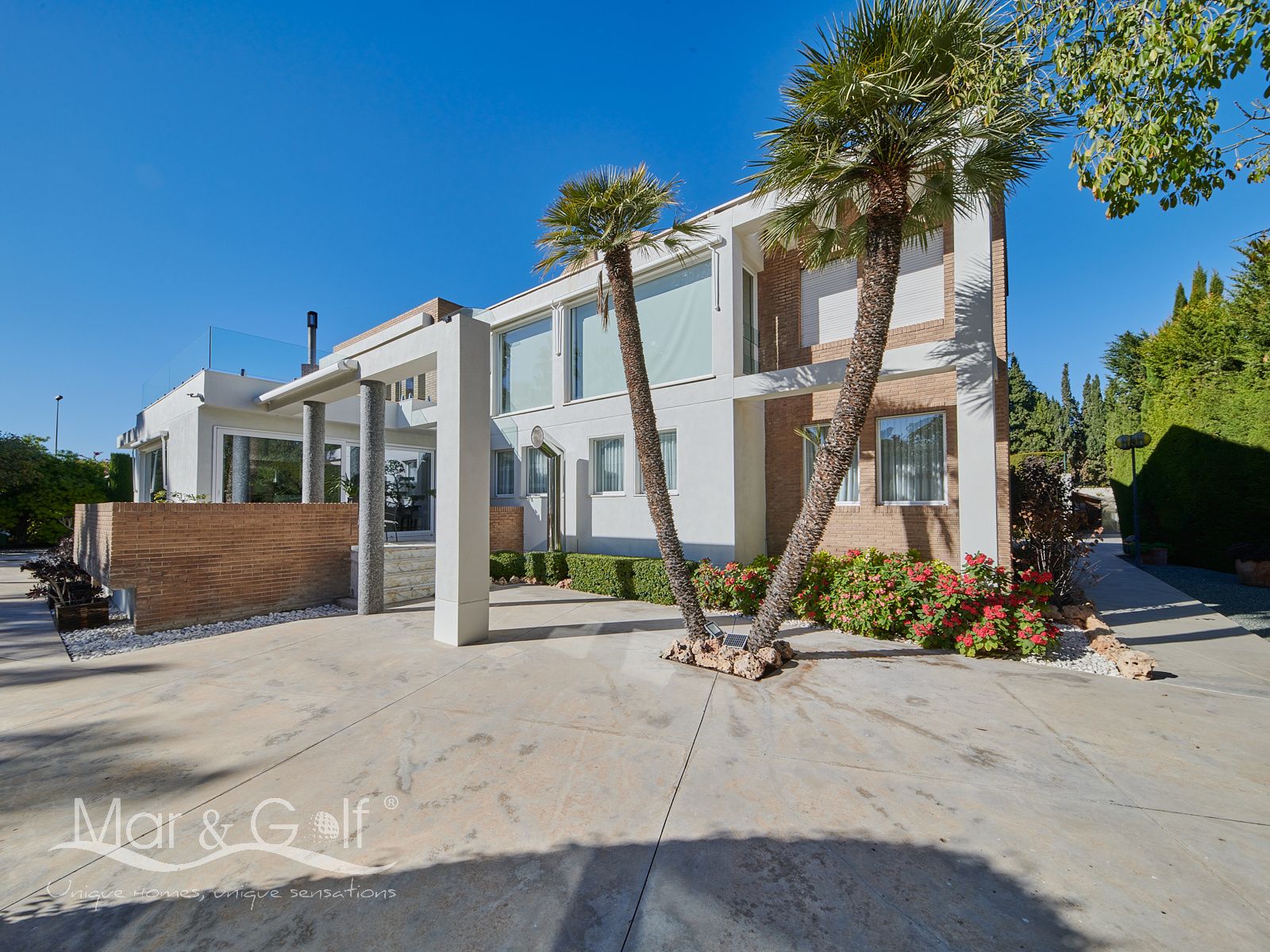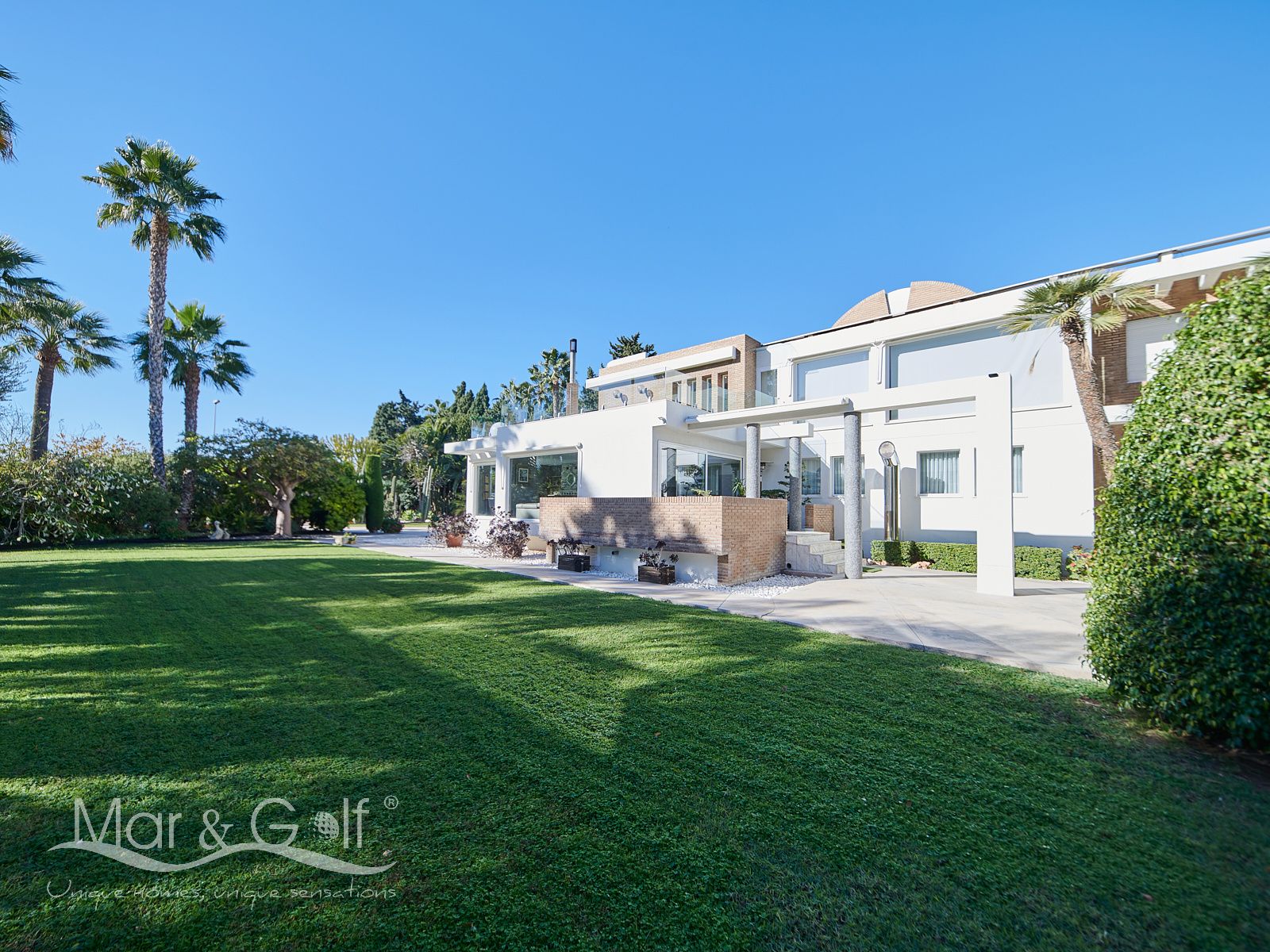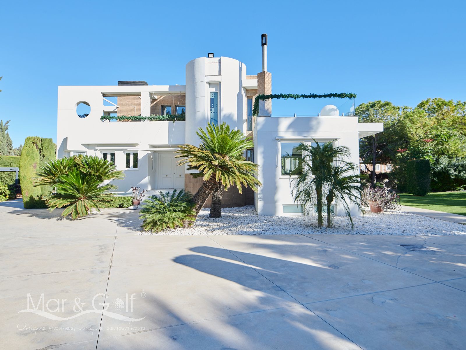 Mar & Golf presenta en exclusiva esta fabulosa villa de lujo en venta en una de las zonas de mayor prestigio y distinción de la ciudad de Alicante. Una joya arquitectónica en el corazón de Alicante Golf, alejada de ruidos urbanos pero a la vez, a pocos minutos de todos los servicios necesarios para la vida diaria.
