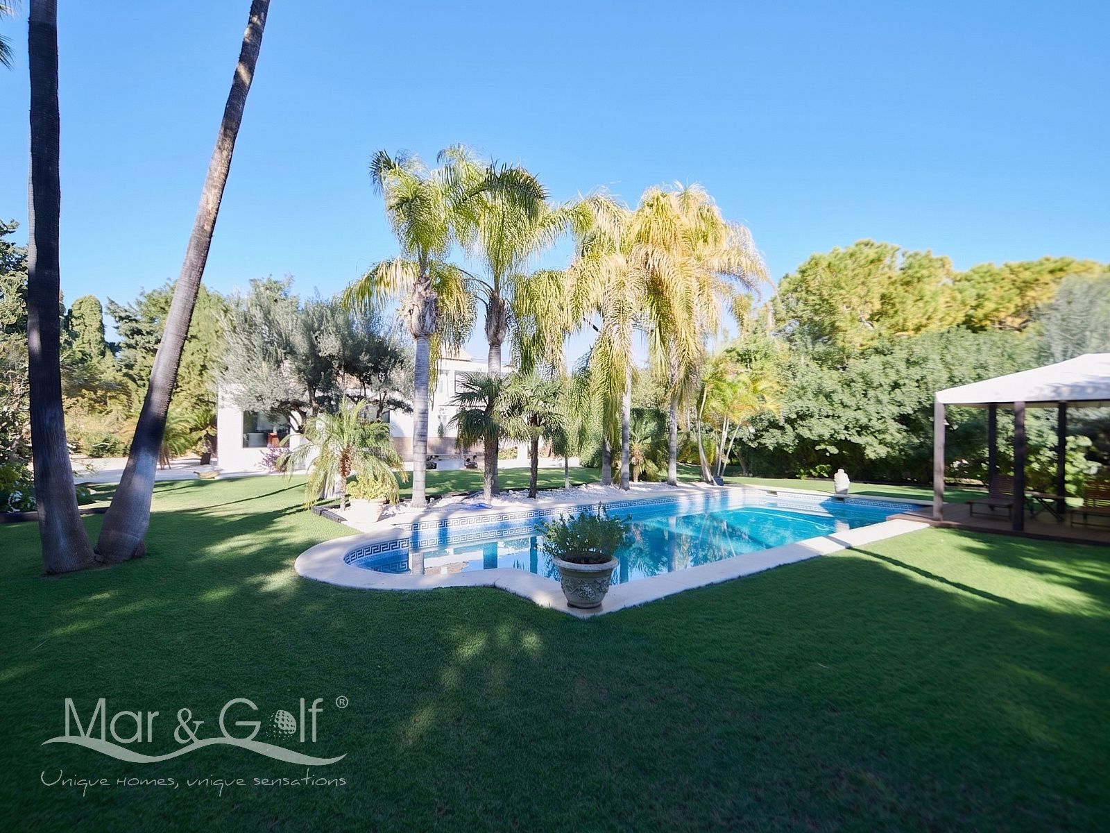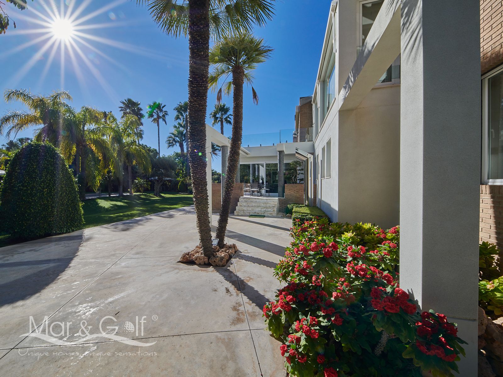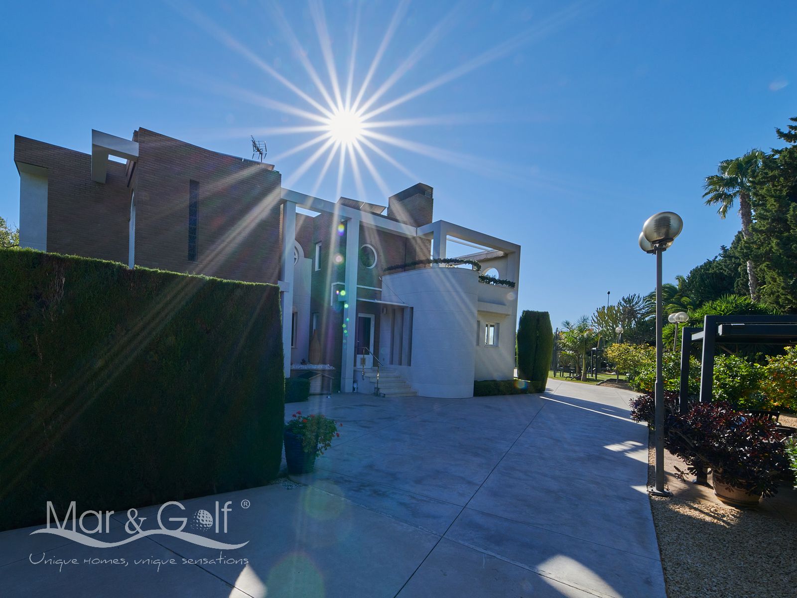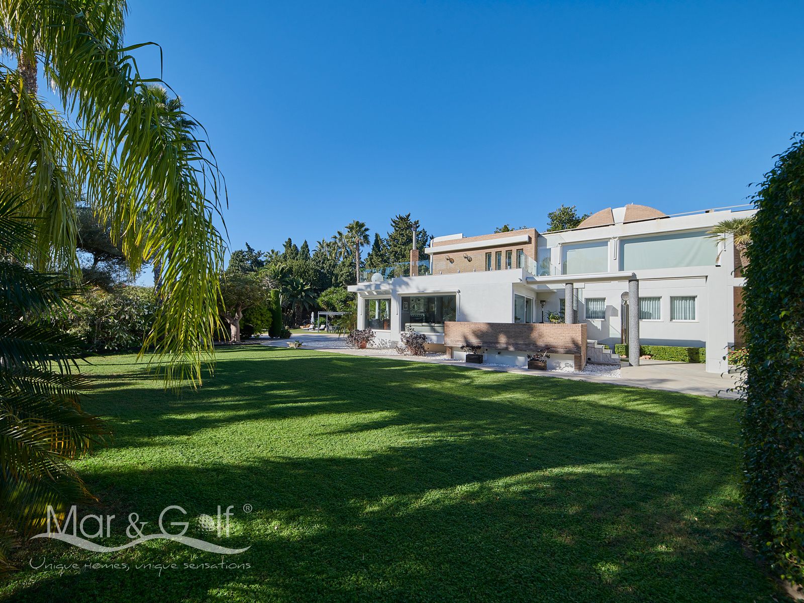 Mar & Golf presenta en exclusiva esta fabulosa villa de lujo en venta en una de las zonas de mayor prestigio y distinción de la ciudad de Alicante. Una joya arquitectónica en el corazón de Alicante Golf, alejada de ruidos urbanos pero a la vez, a pocos minutos de todos los servicios necesarios para la vida diaria.