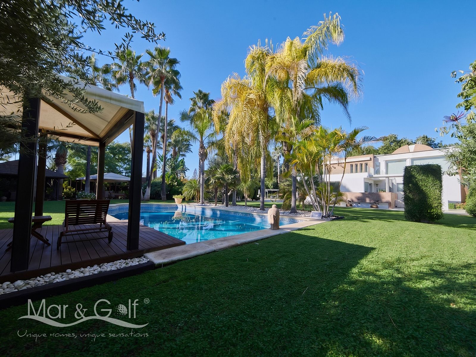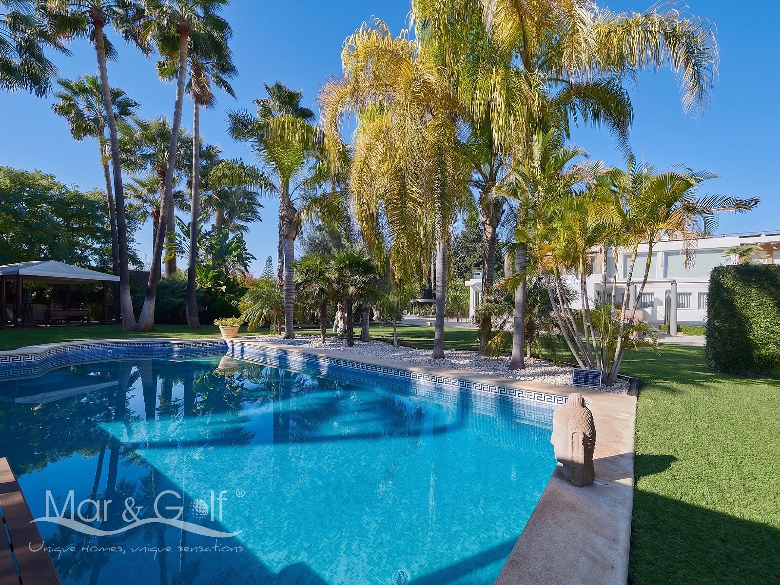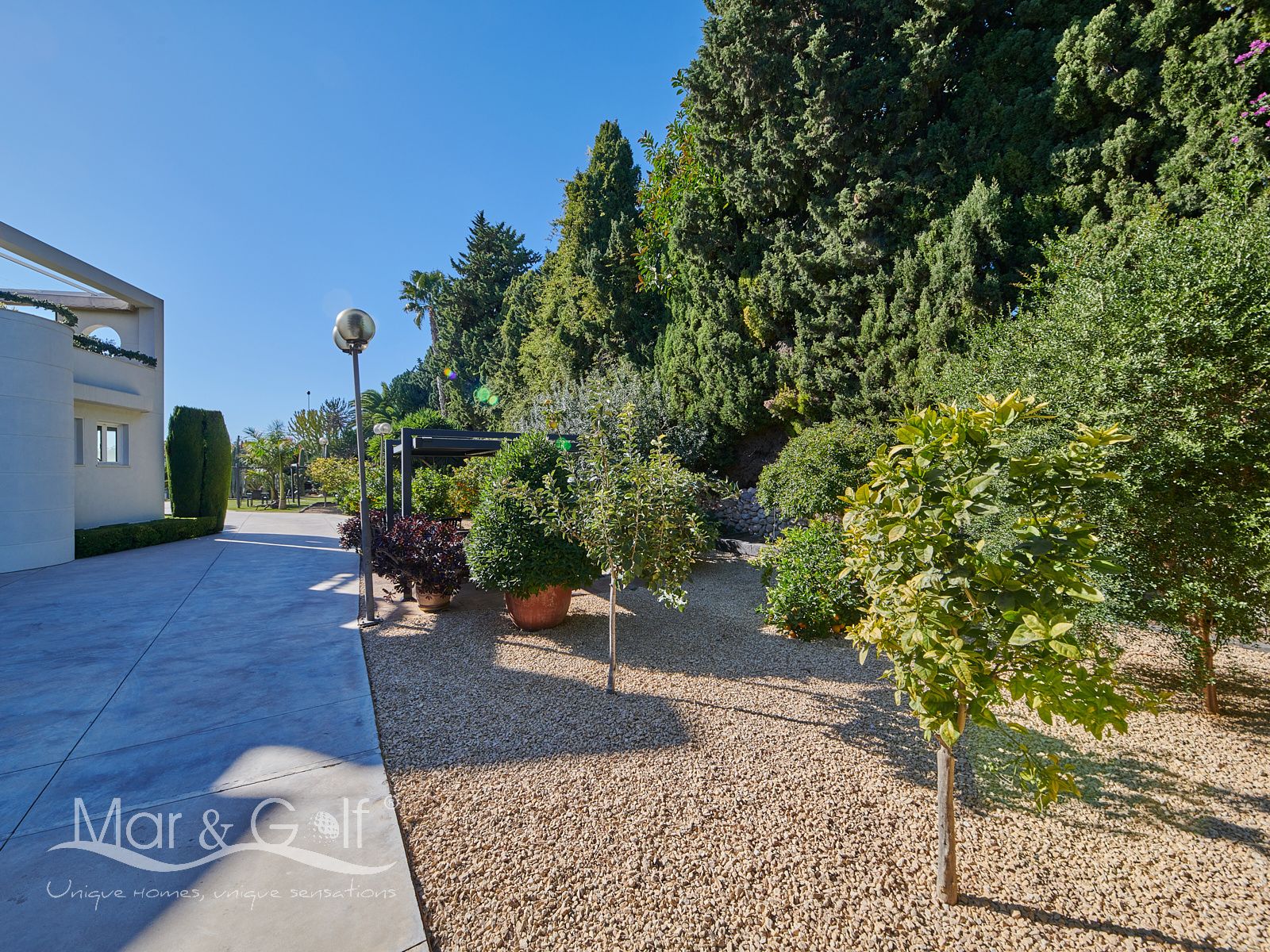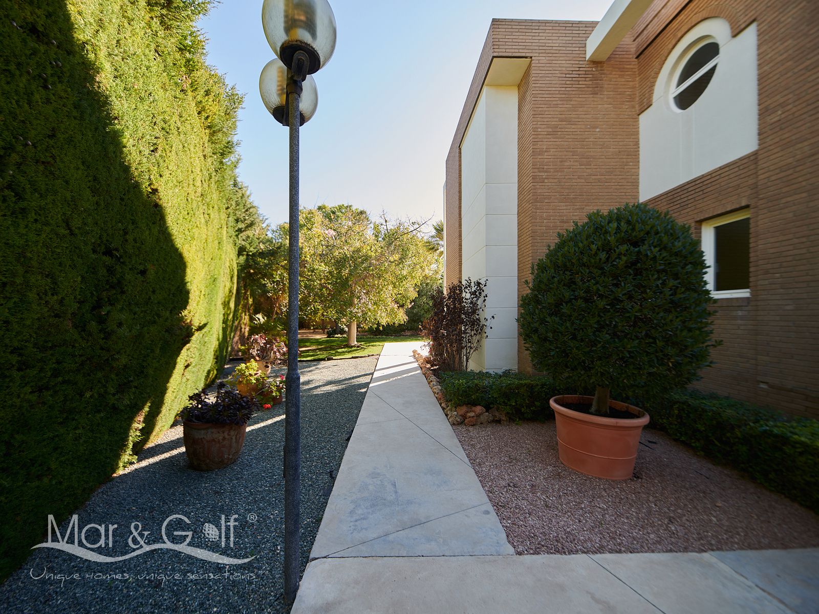 Mar & Golf presenta en exclusiva esta fabulosa villa de lujo en venta en una de las zonas de mayor prestigio y distinción de la ciudad de Alicante. Una joya arquitectónica en el corazón de Alicante Golf, alejada de ruidos urbanos pero a la vez, a pocos minutos de todos los servicios necesarios para la vida diaria.