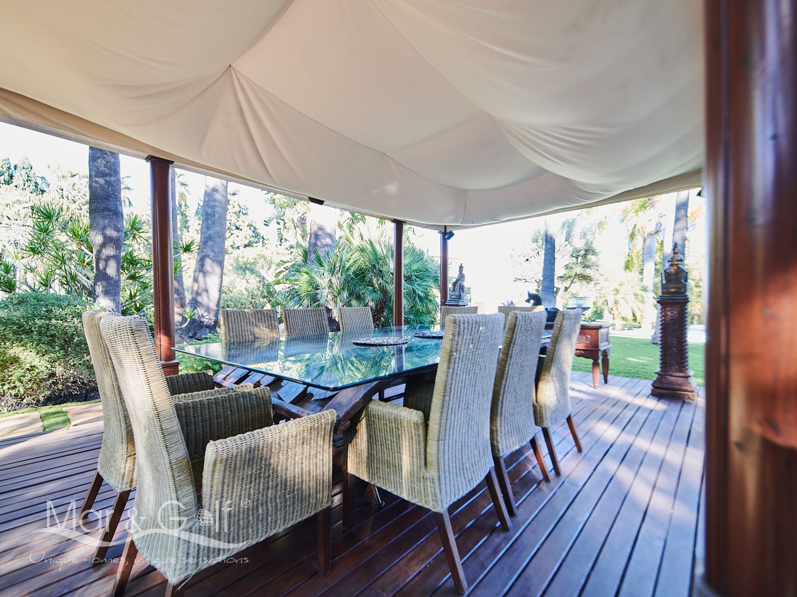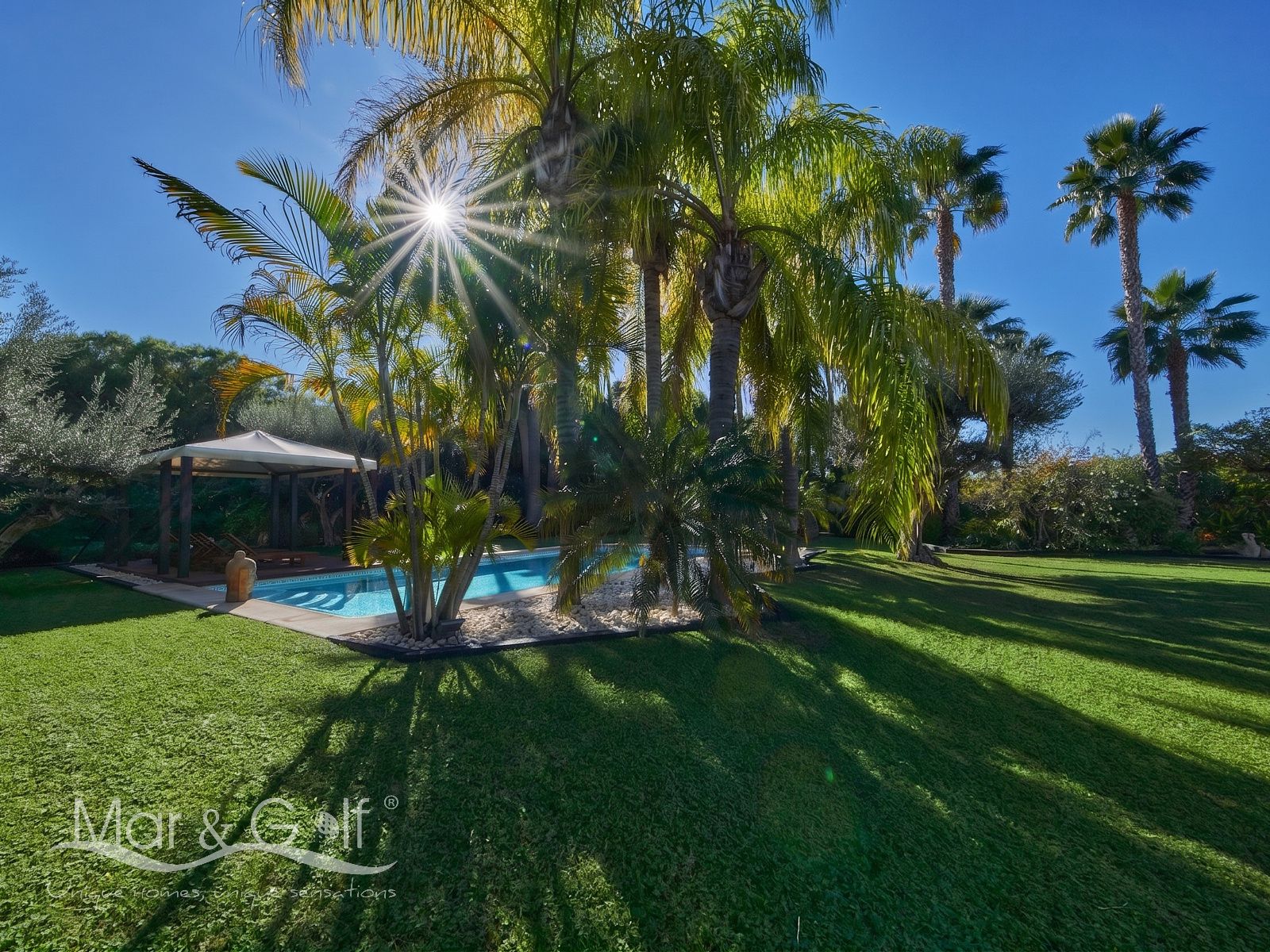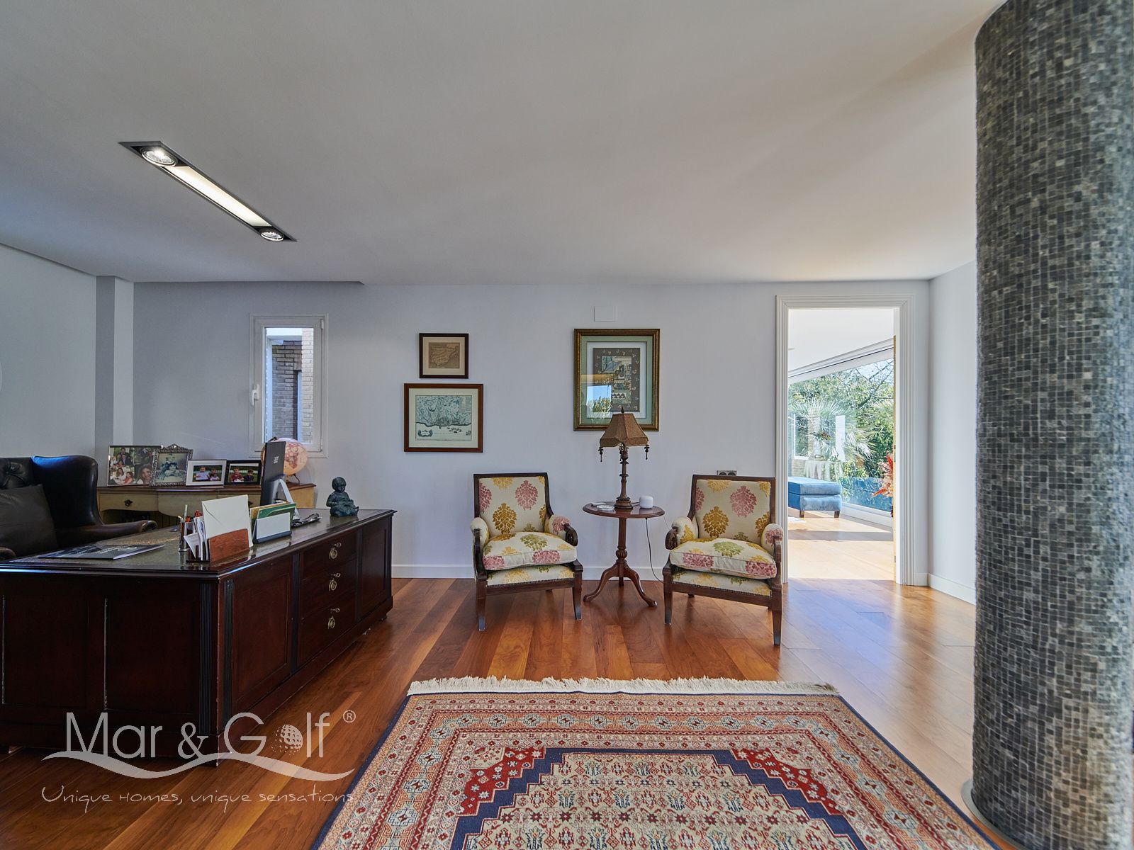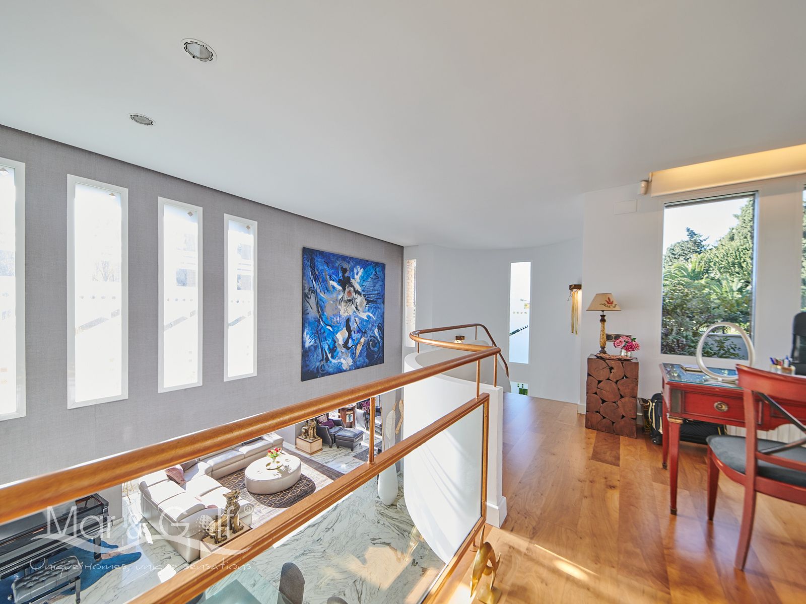 Mar & Golf presenta en exclusiva esta fabulosa villa de lujo en venta en una de las zonas de mayor prestigio y distinción de la ciudad de Alicante. Una joya arquitectónica en el corazón de Alicante Golf, alejada de ruidos urbanos pero a la vez, a pocos minutos de todos los servicios necesarios para la vida diaria.