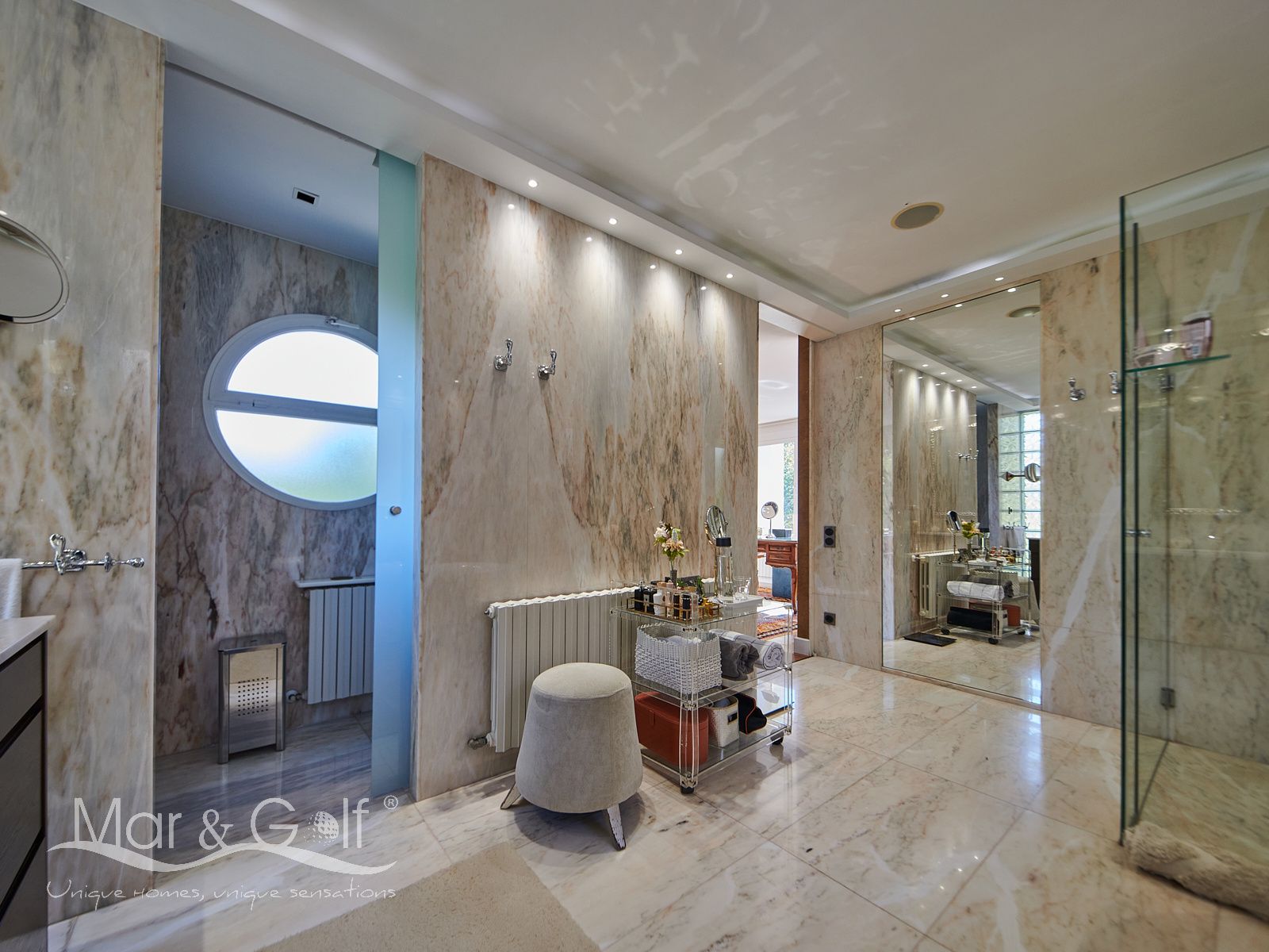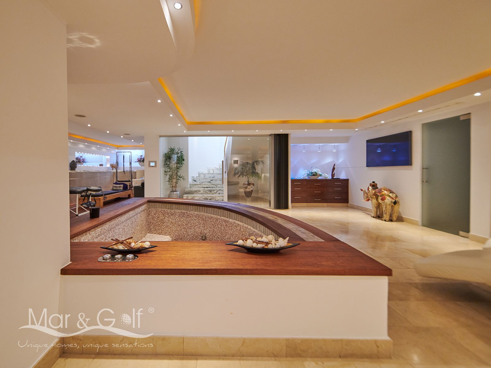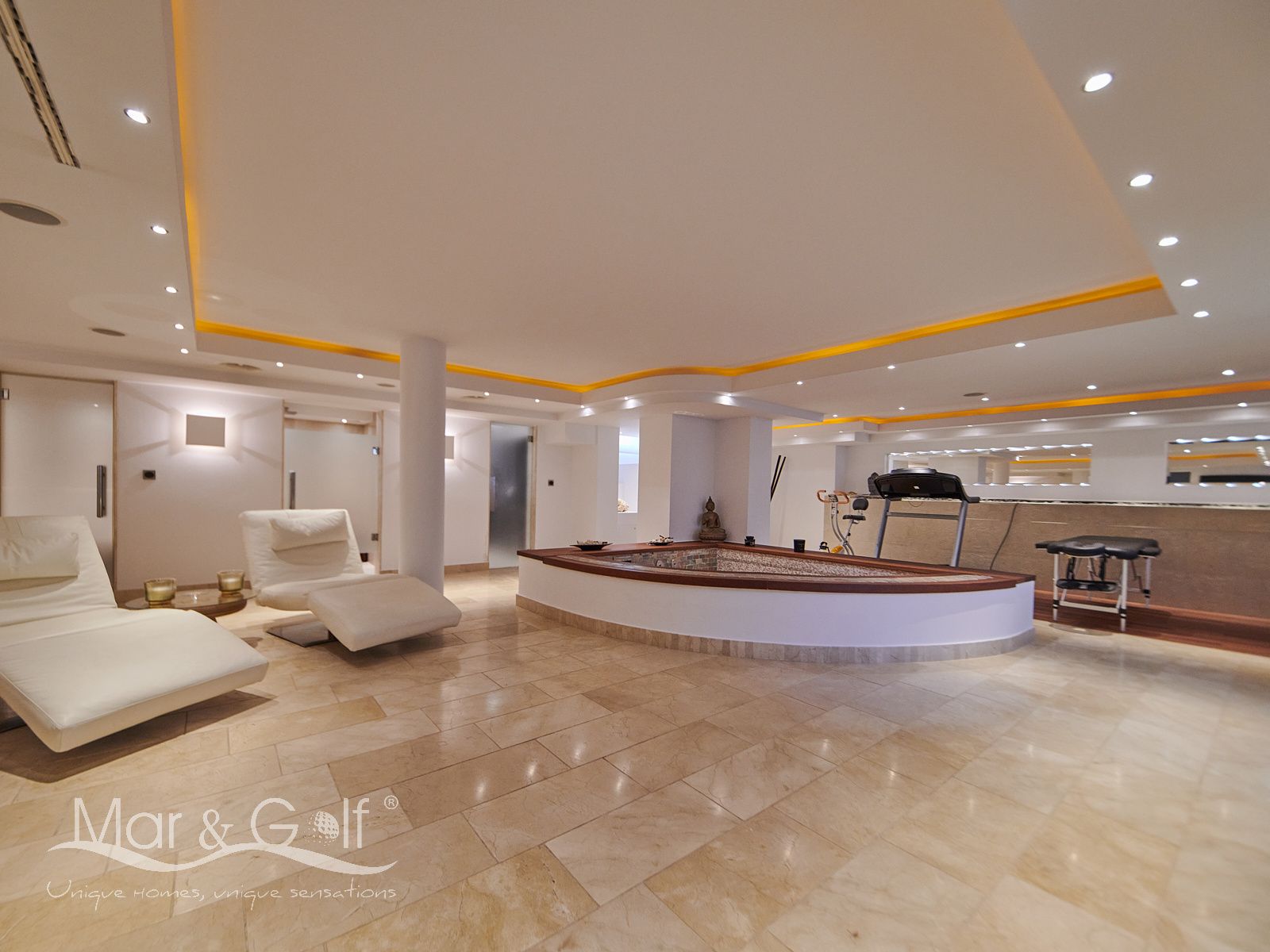 La planta sótano es un verdadero santuario de bienestar y funcionalidad. Este nivel inferior de la villa está concebido como un auténtico spa privado dotado de un sistema de música ambiental integrado.