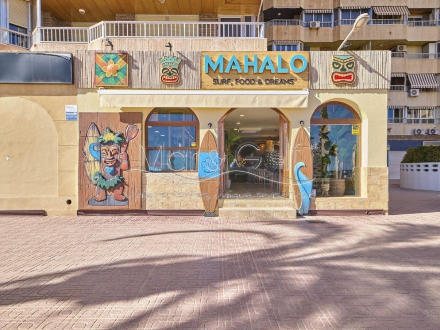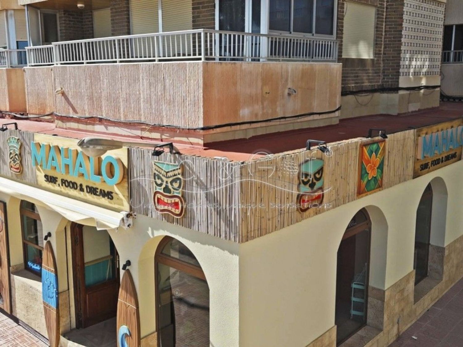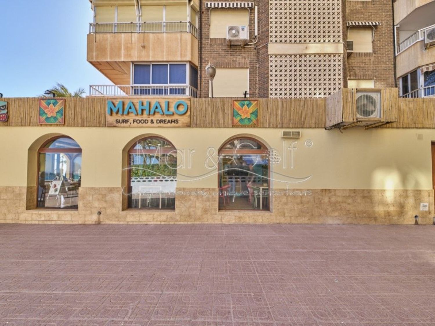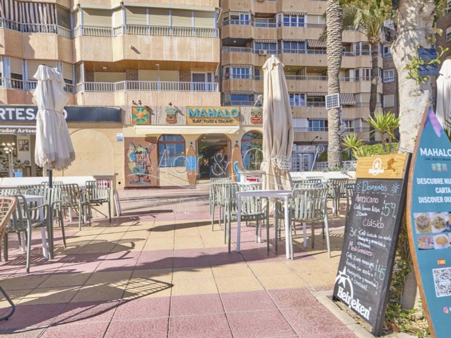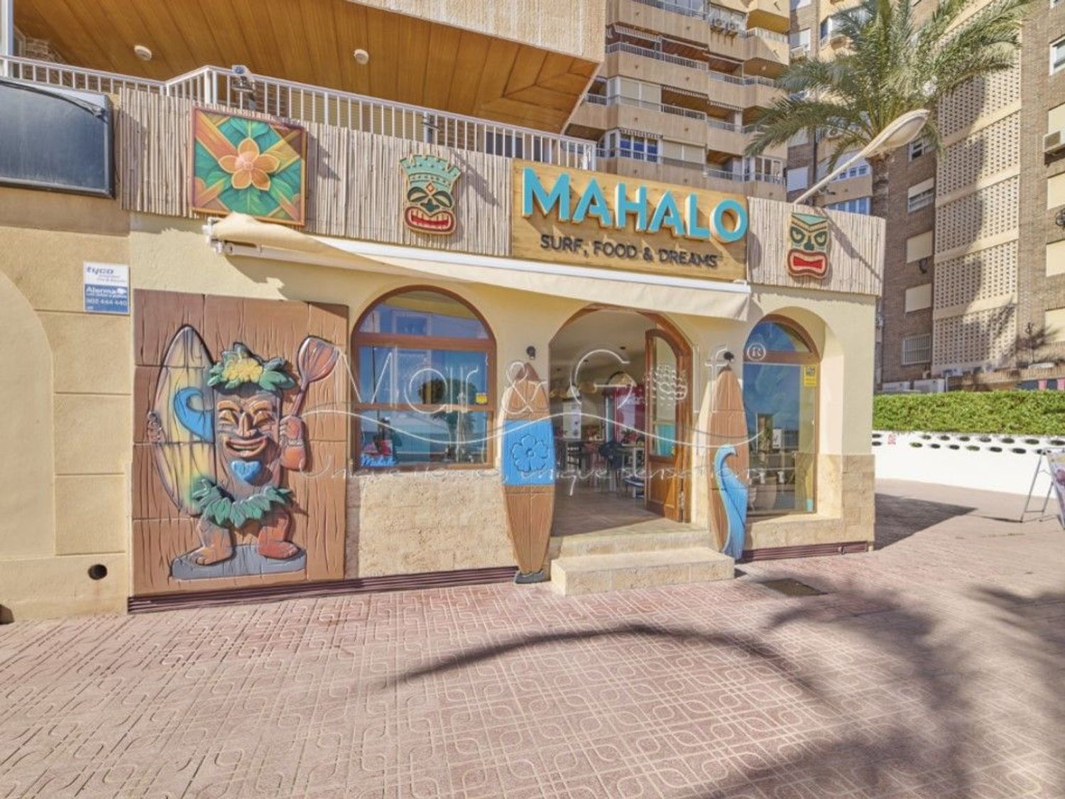 Cuenta con un amplio salón interior de 120 m² y una espectacular terraza de 115 m² con vistas directas al mar, uno de los mayores atractivos del negocio.