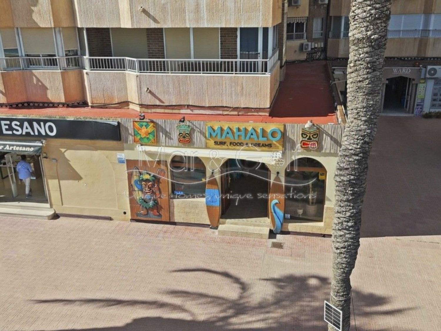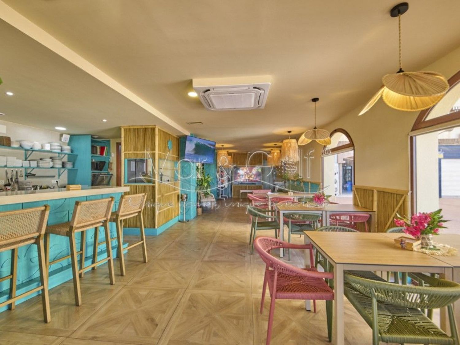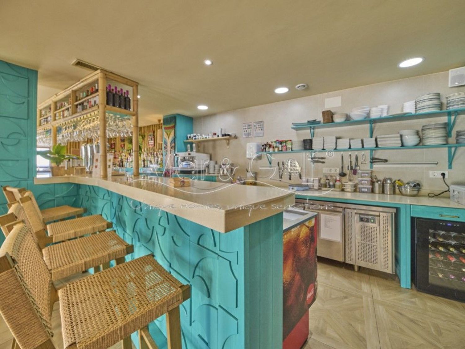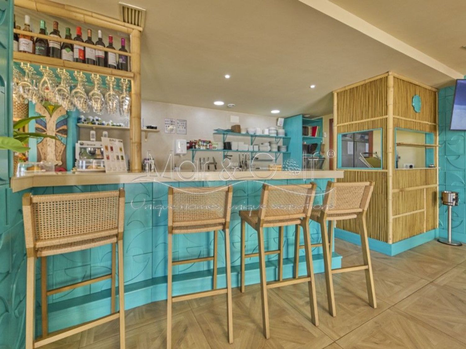 Cuenta con un amplio salón interior de 120 m² y una espectacular terraza de 115 m² con vistas directas al mar, uno de los mayores atractivos del negocio.