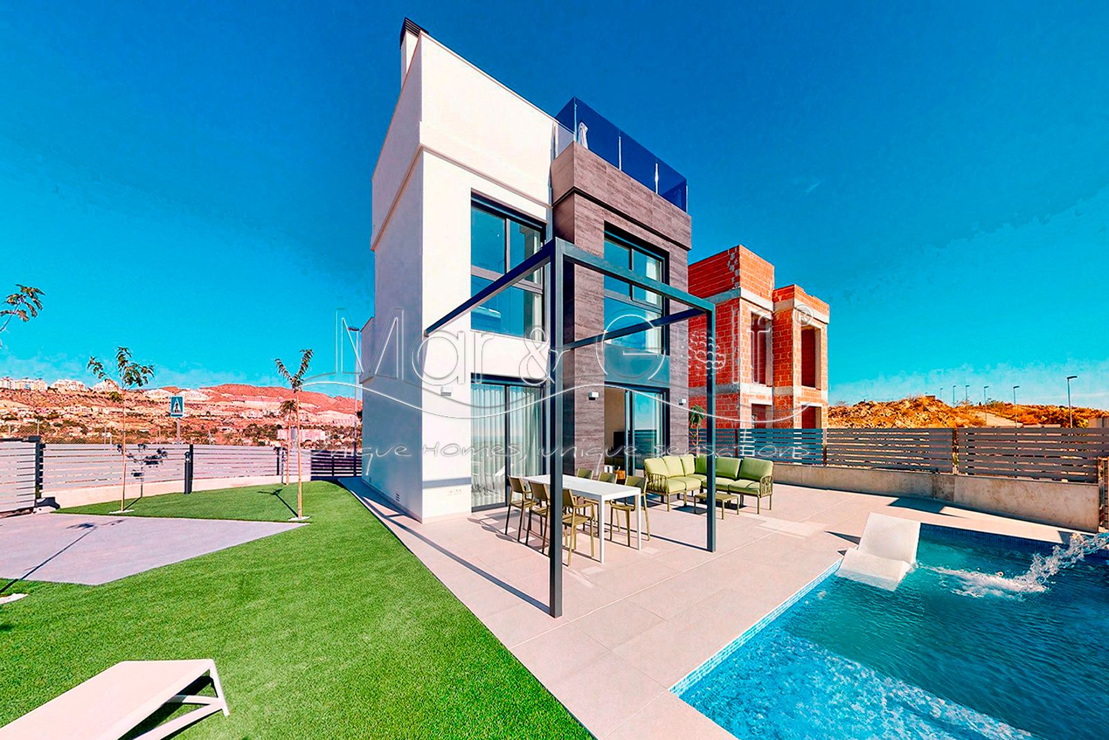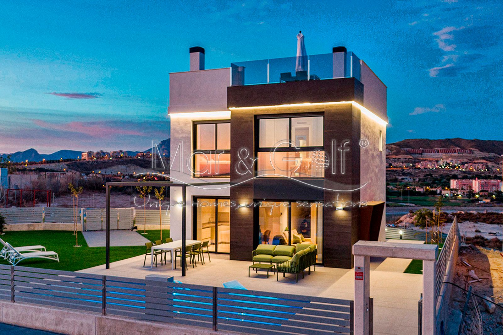 Mar & Golf presenta Alicante Panoramic, un conjunto de chalets independientes, dentro de la urbanización El Dorado Country Club, de diseño moderno con jardín y piscina privados y algunos de ellos con vistas al mar.
