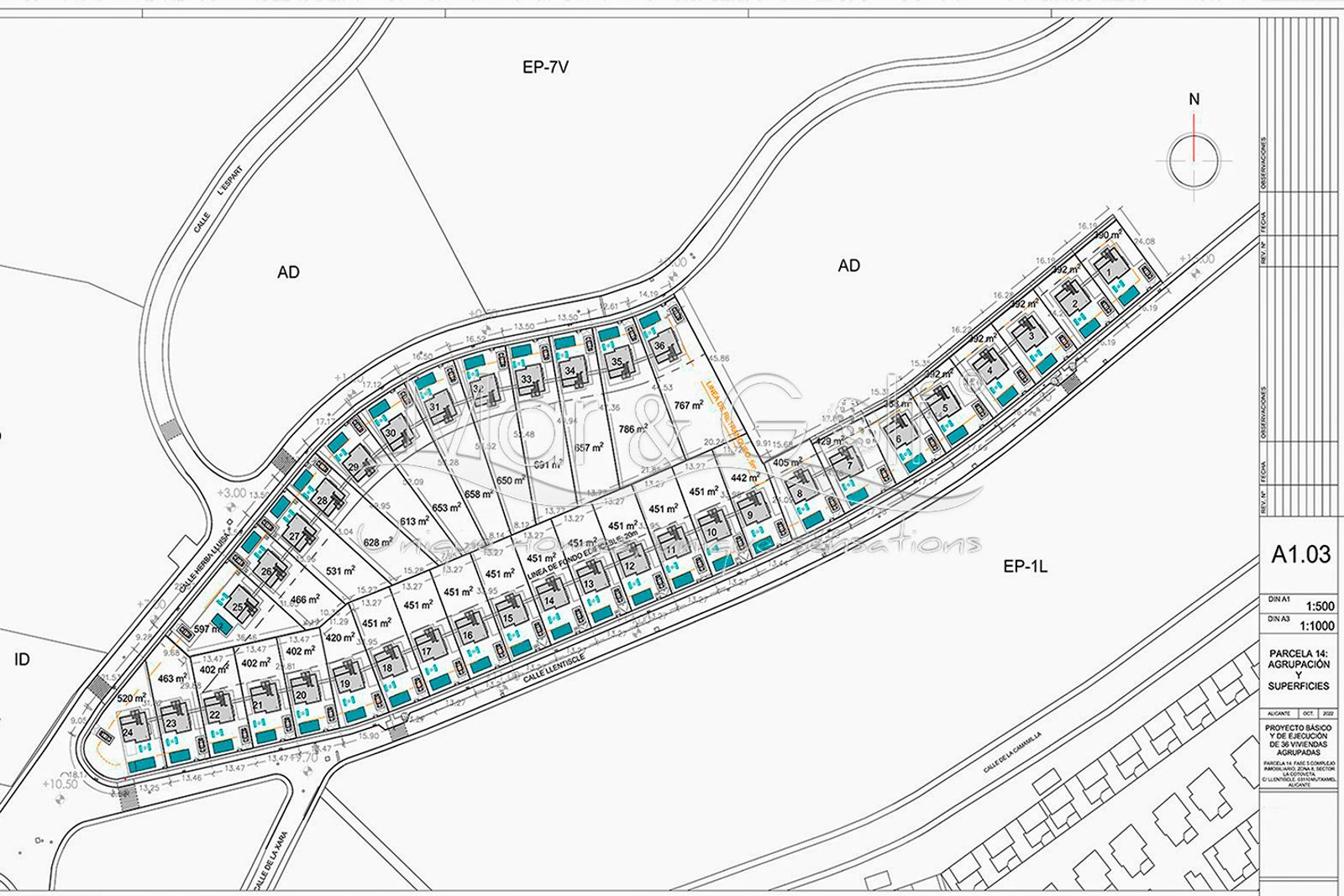 Las dimensiones de las viviendas son exactas y las dimensiones de las parcelas varían entre trescientos noventa metros cuadrados y setecientos noventa y siete y de la misma forma, también los precios, que van desde cuatrocientos cincuenta mil euros hasta cuatrocientos noventa y cinco mil.