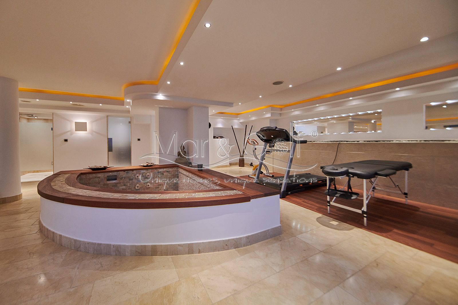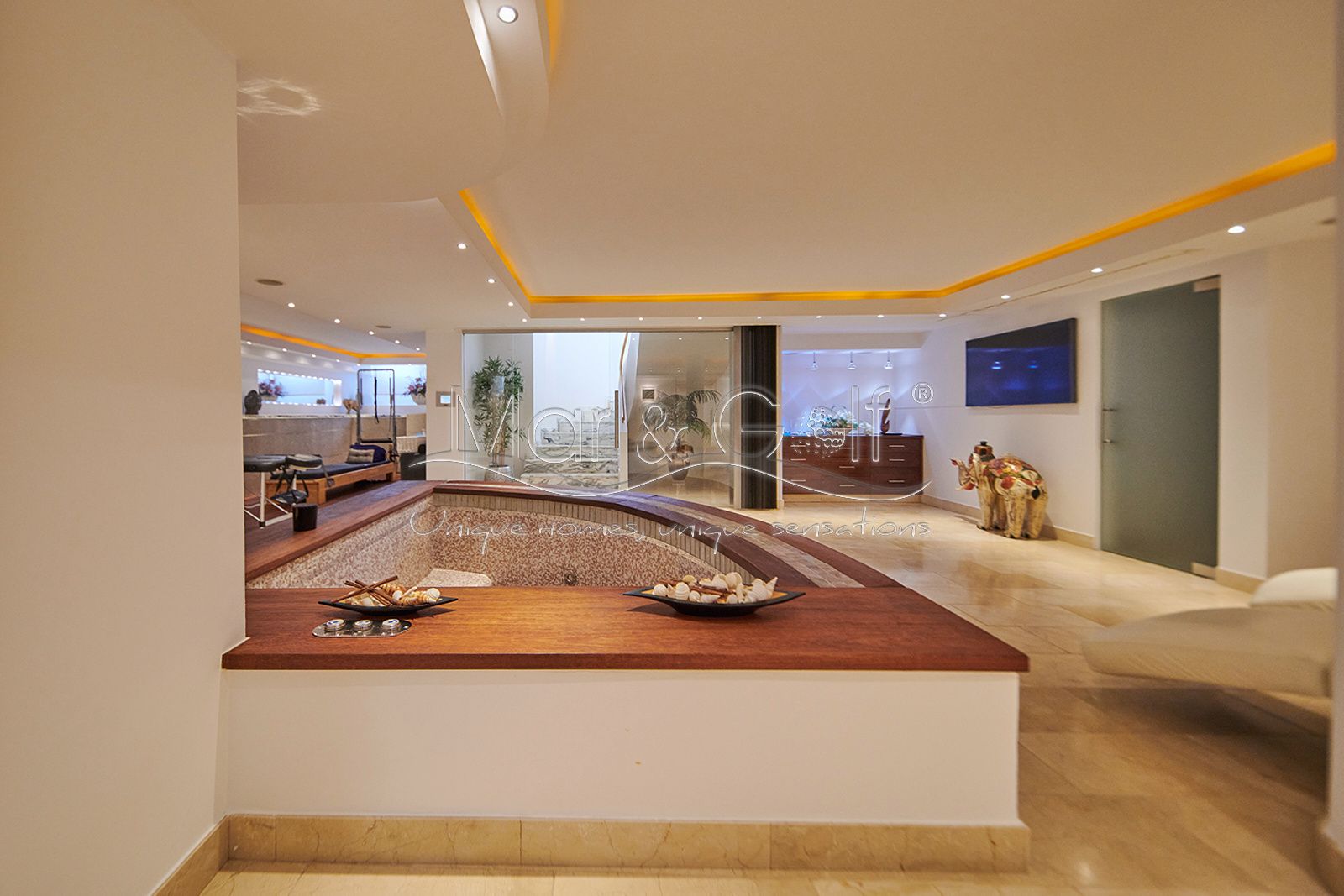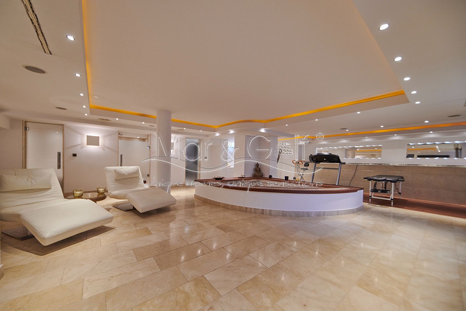 La planta sótano es un verdadero santuario de bienestar y funcionalidad. Este nivel inferior de la villa está concebido como un auténtico spa privado dotado de un sistema de música ambiental integrado.