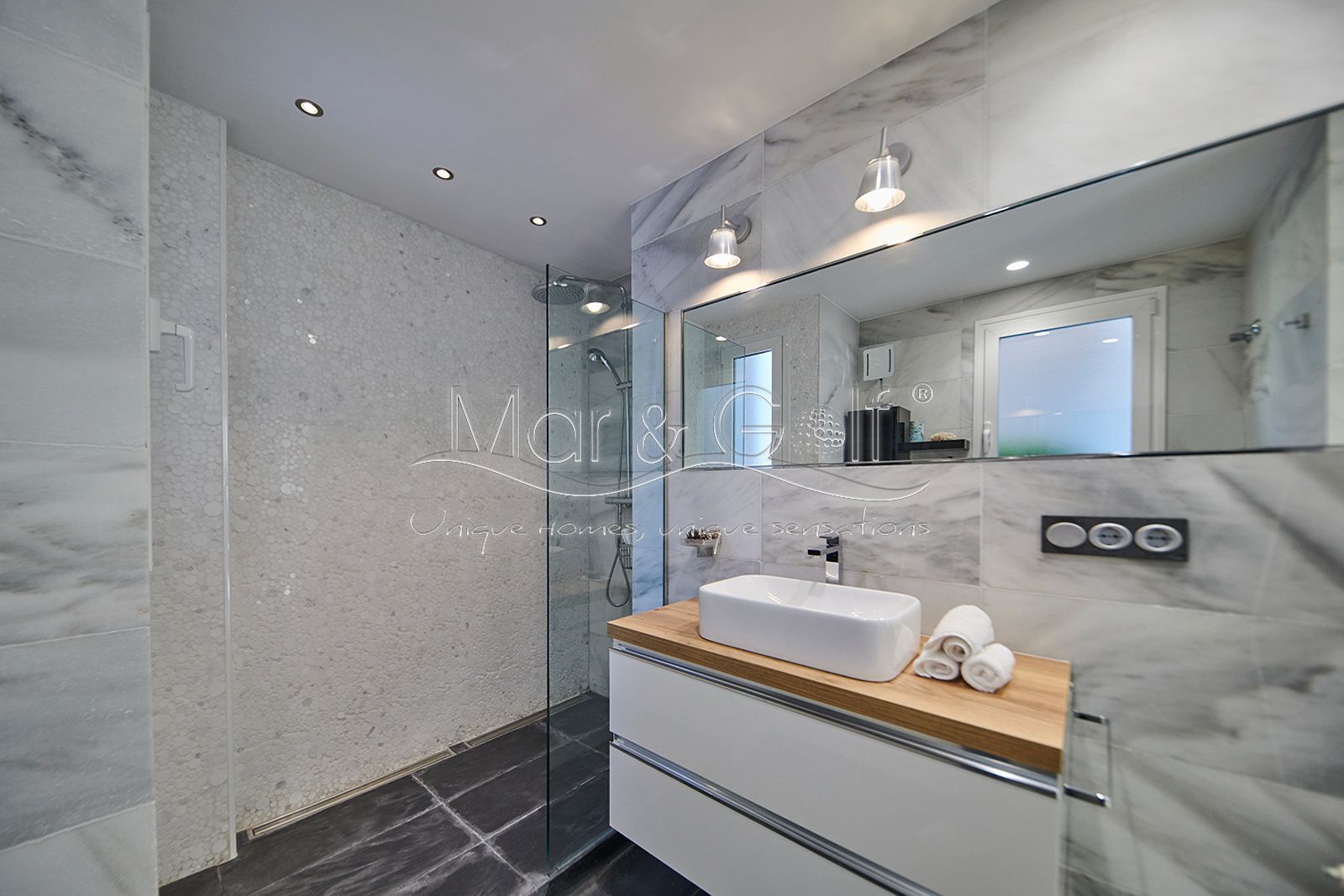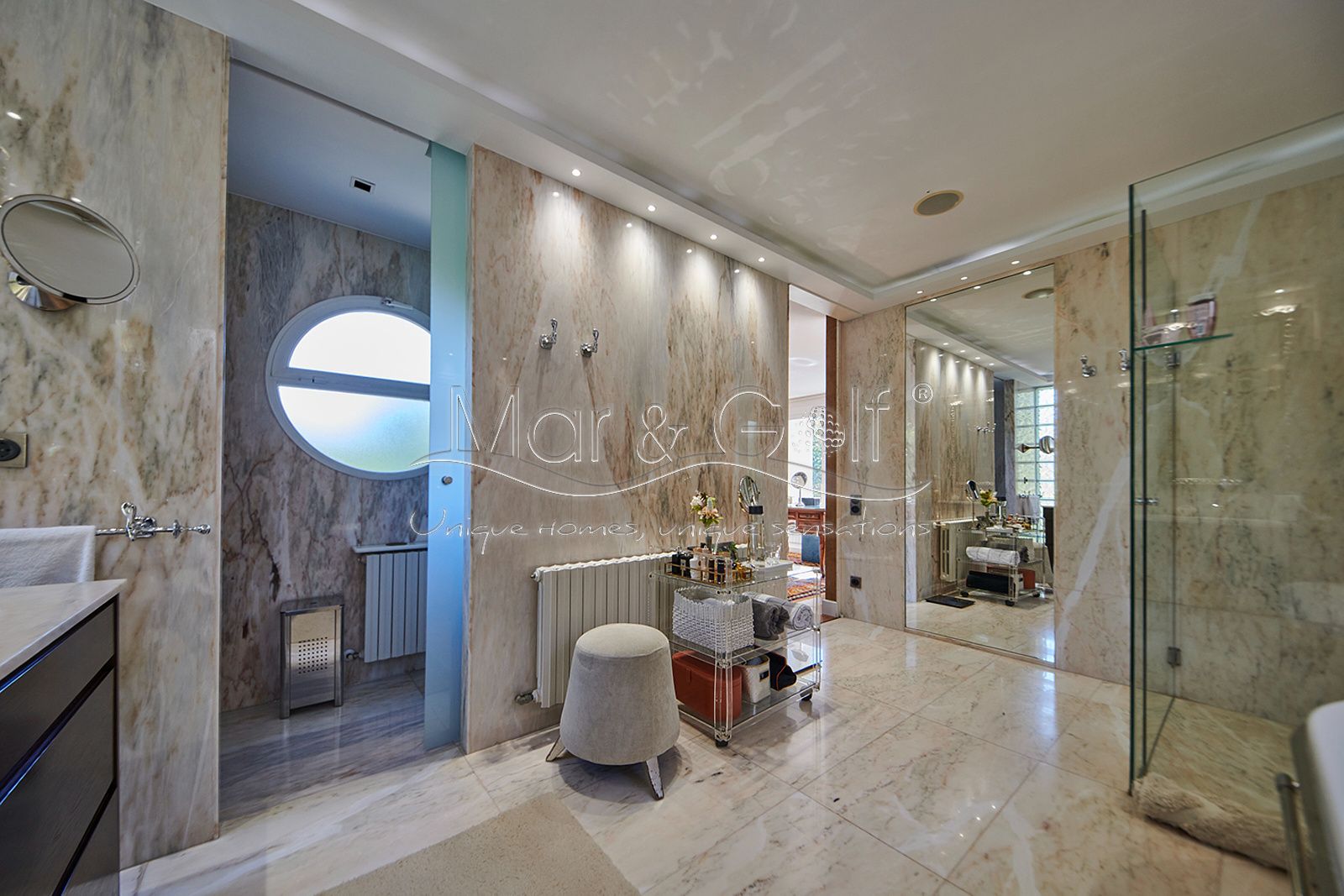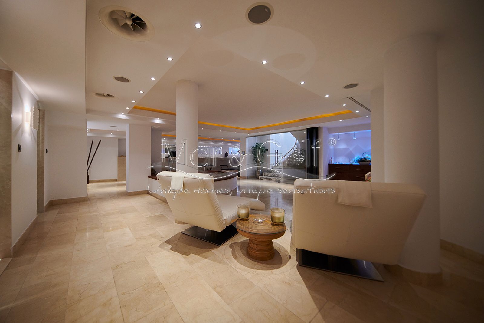 La planta sótano es un verdadero santuario de bienestar y funcionalidad. Este nivel inferior de la villa está concebido como un auténtico spa privado dotado de un sistema de música ambiental integrado.