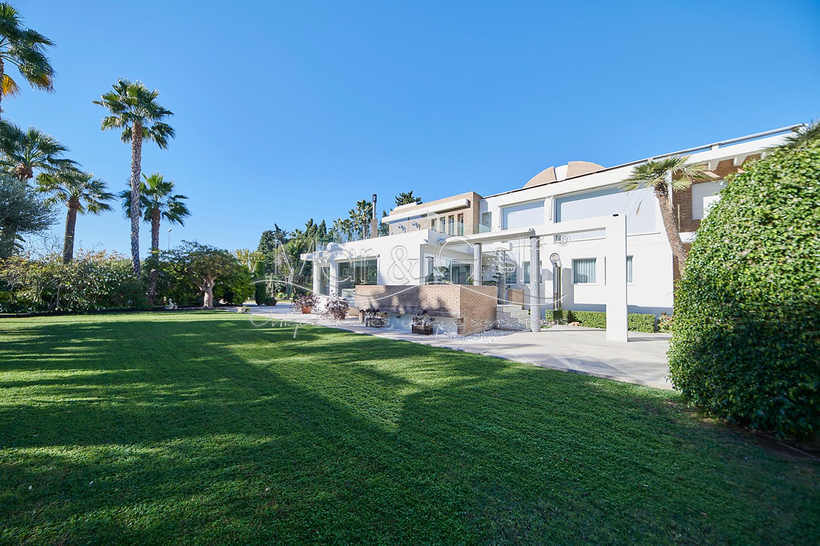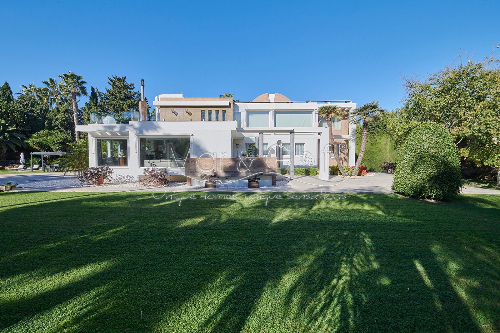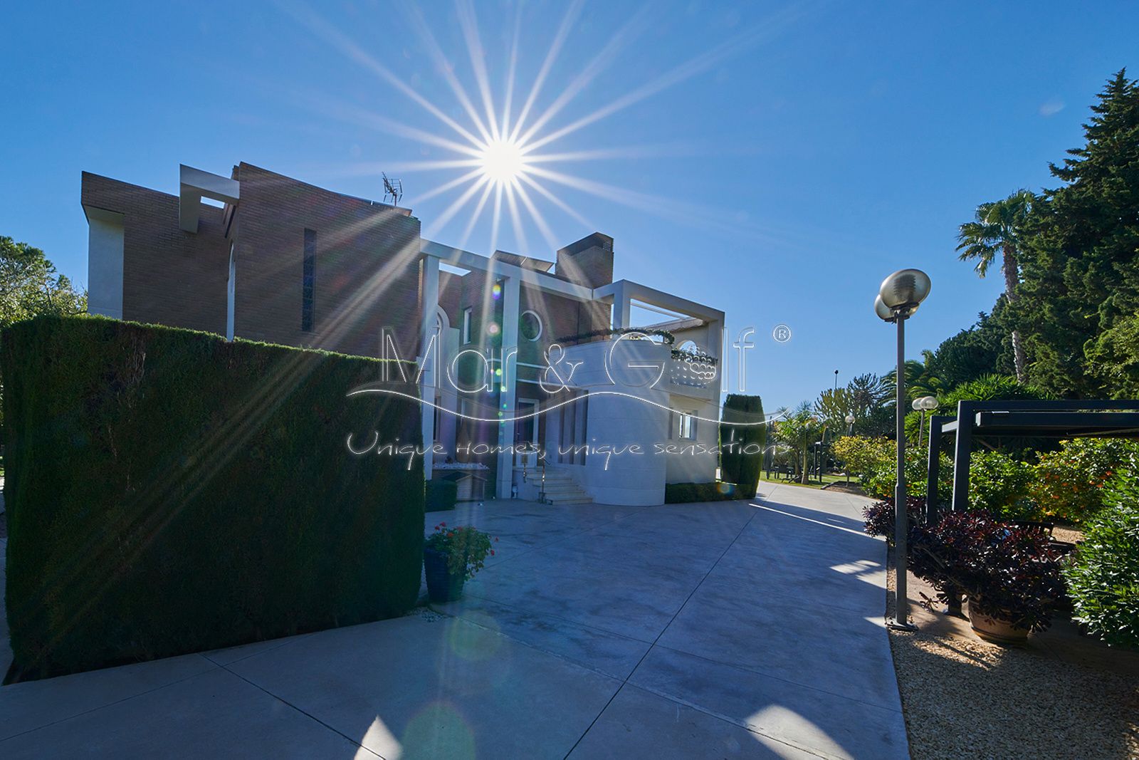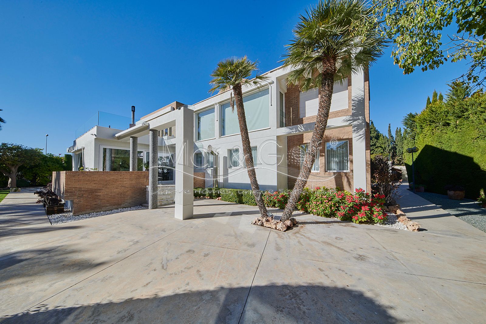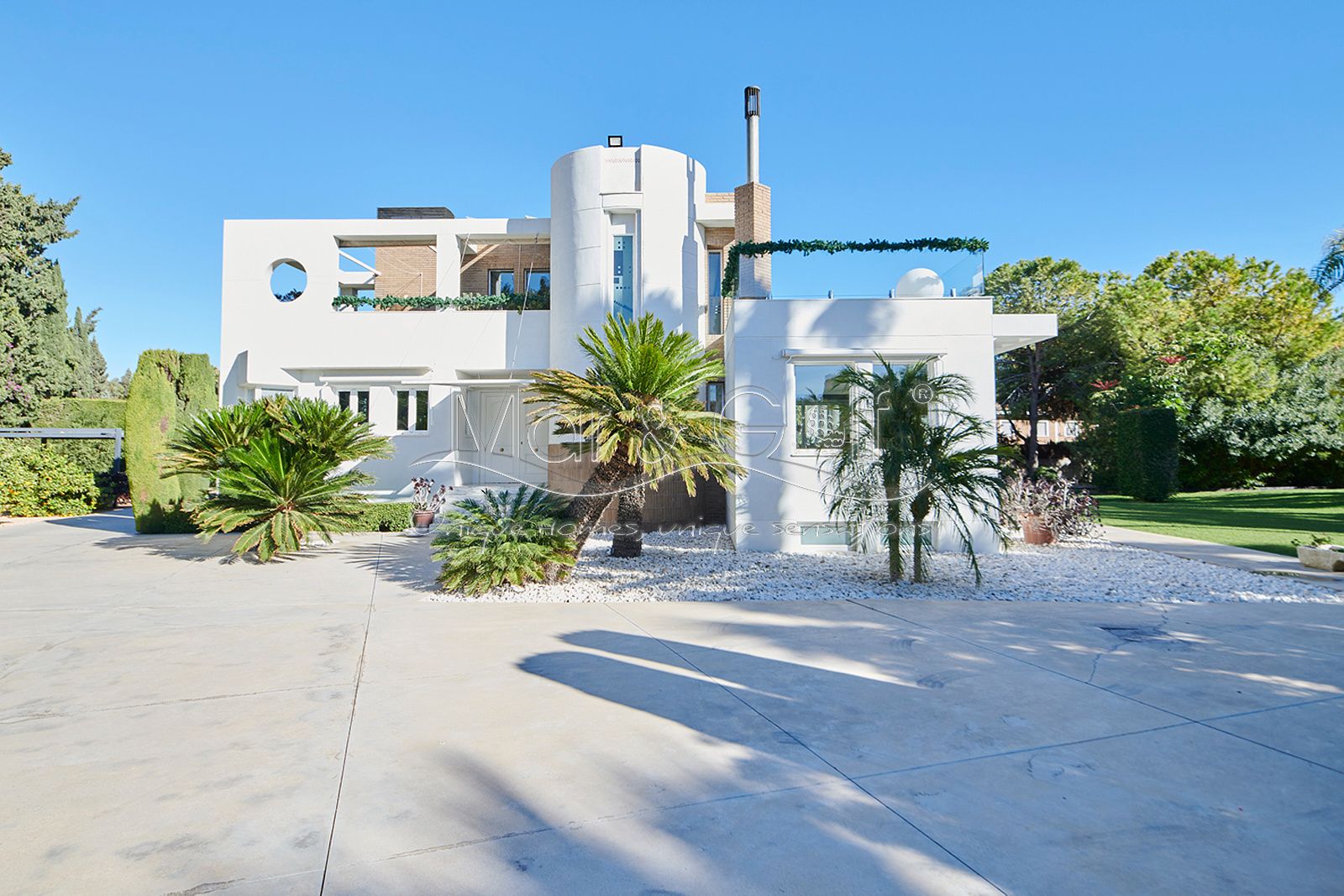 Mar & Golf presenta en exclusiva esta fabulosa villa de lujo en venta en una de las zonas de mayor prestigio y distinción de la ciudad de Alicante. Una joya arquitectónica en el corazón de Alicante Golf, alejada de ruidos urbanos pero a la vez, a pocos minutos de todos los servicios necesarios para la vida diaria.