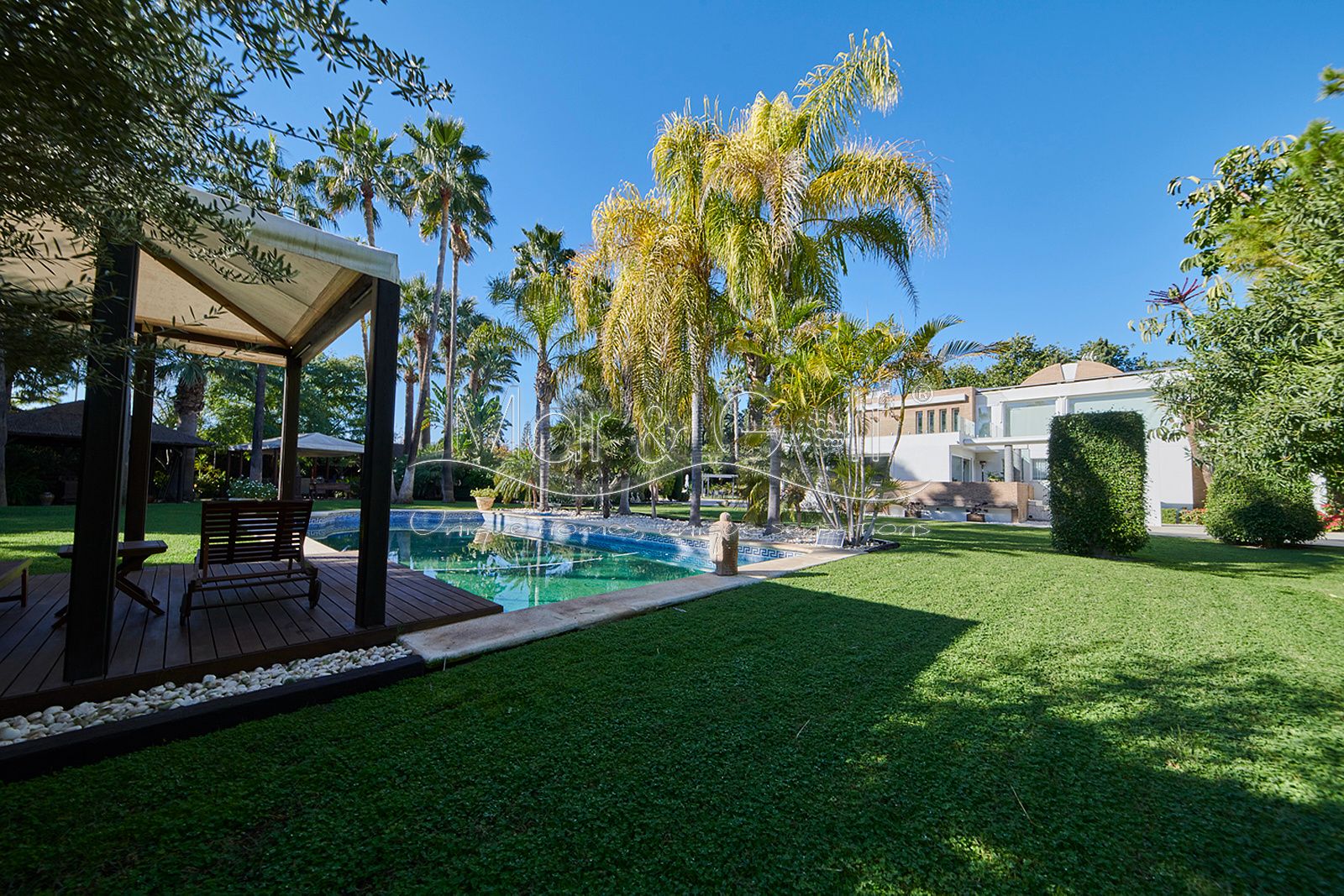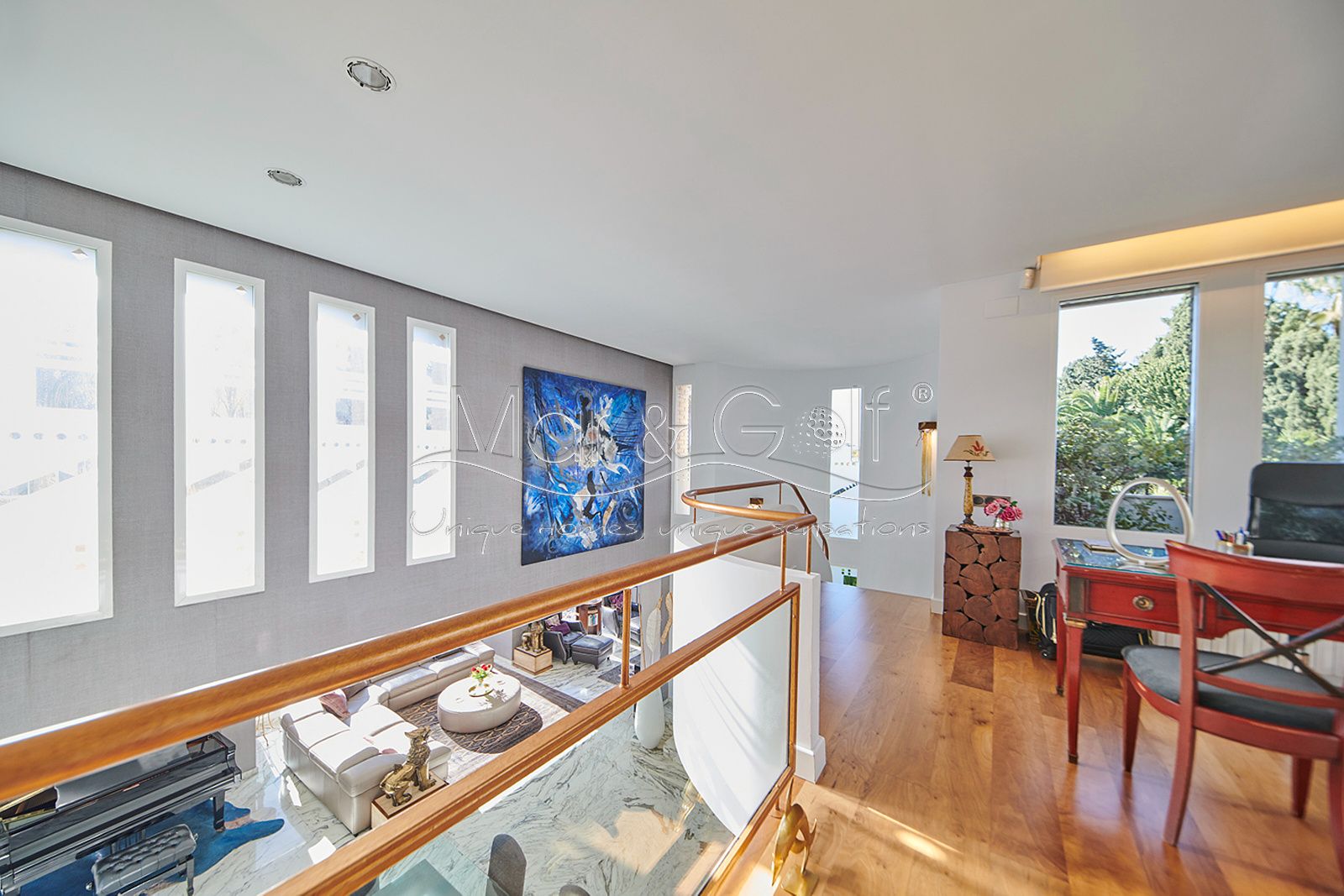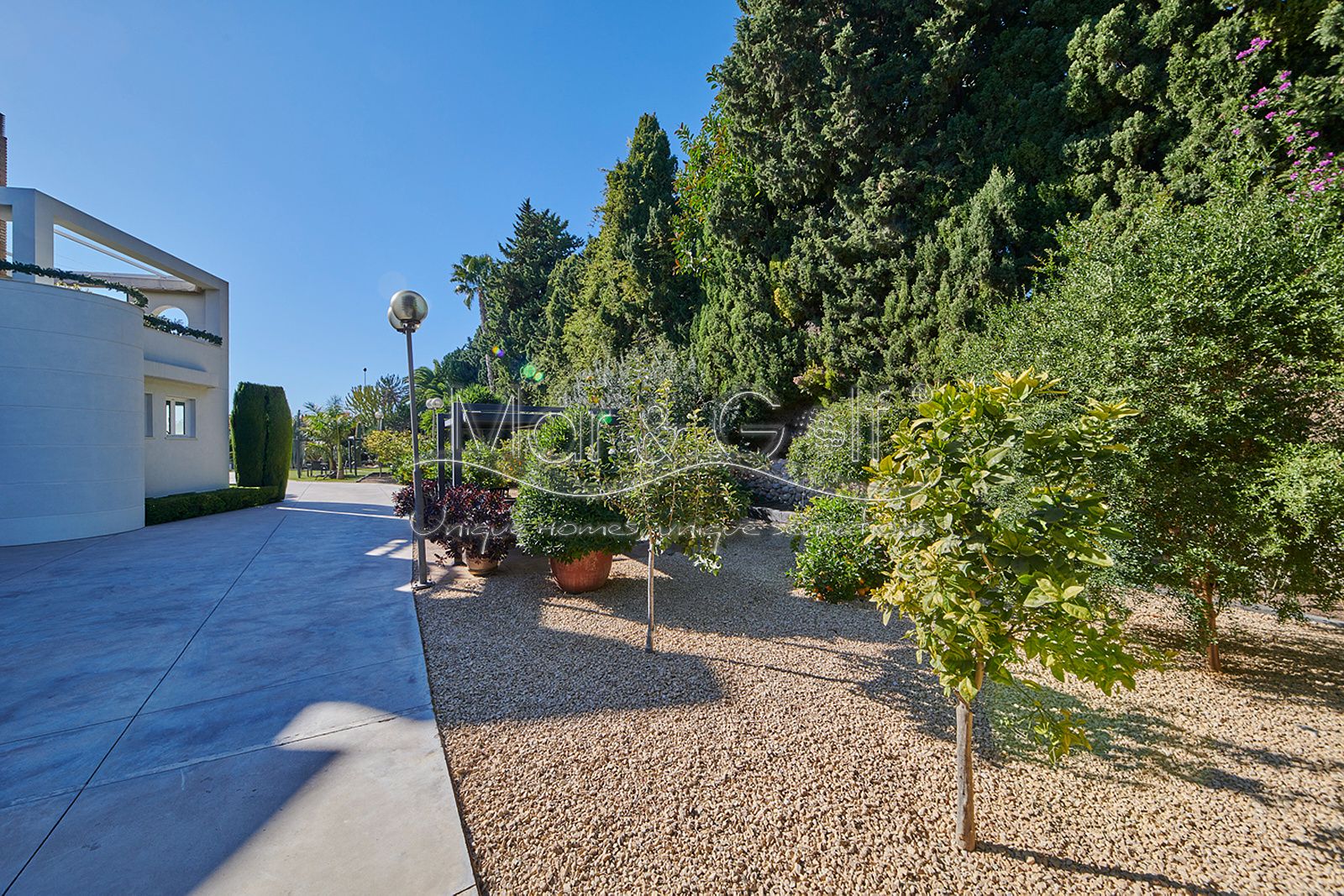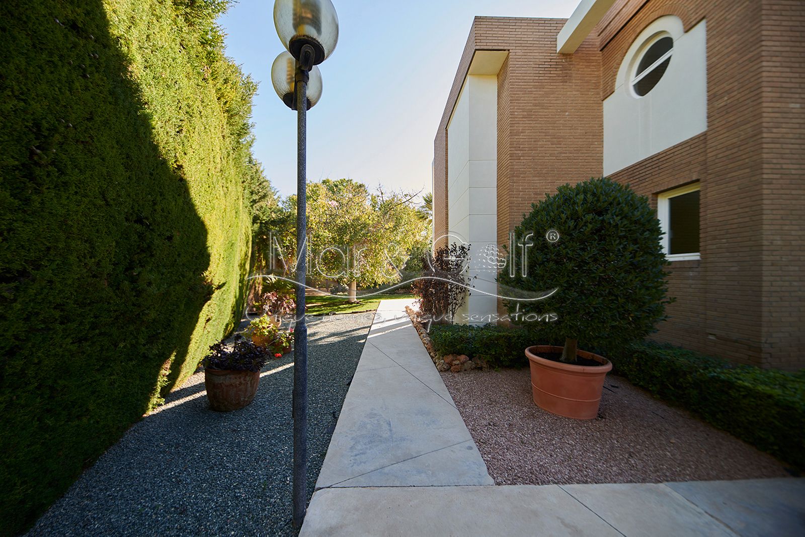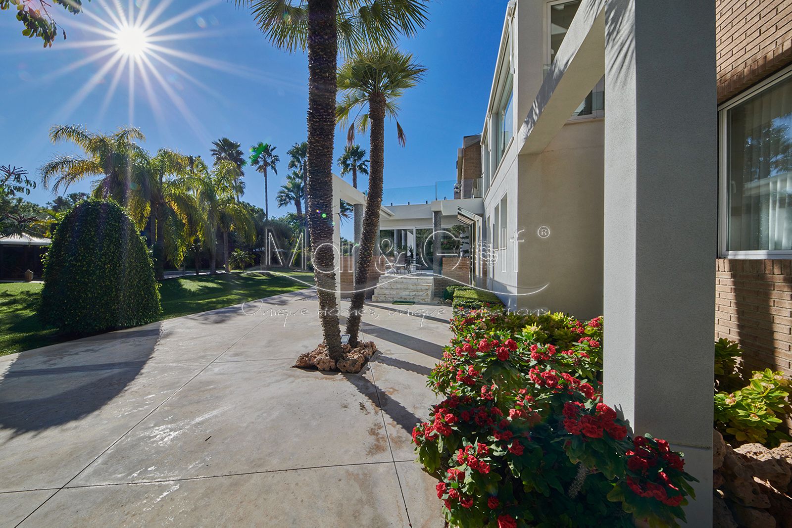 Mar & Golf presenta en exclusiva esta fabulosa villa de lujo en venta en una de las zonas de mayor prestigio y distinción de la ciudad de Alicante. Una joya arquitectónica en el corazón de Alicante Golf, alejada de ruidos urbanos pero a la vez, a pocos minutos de todos los servicios necesarios para la vida diaria.