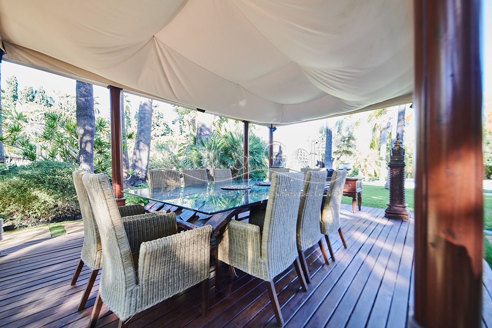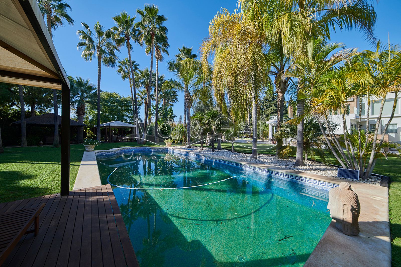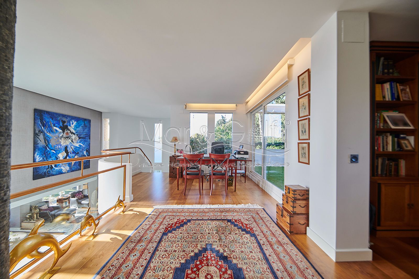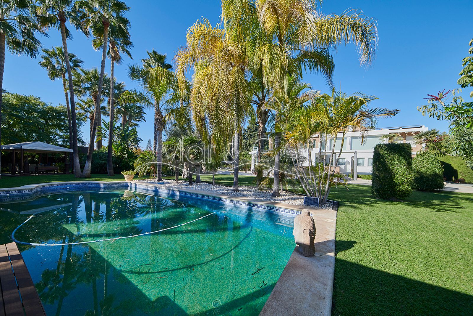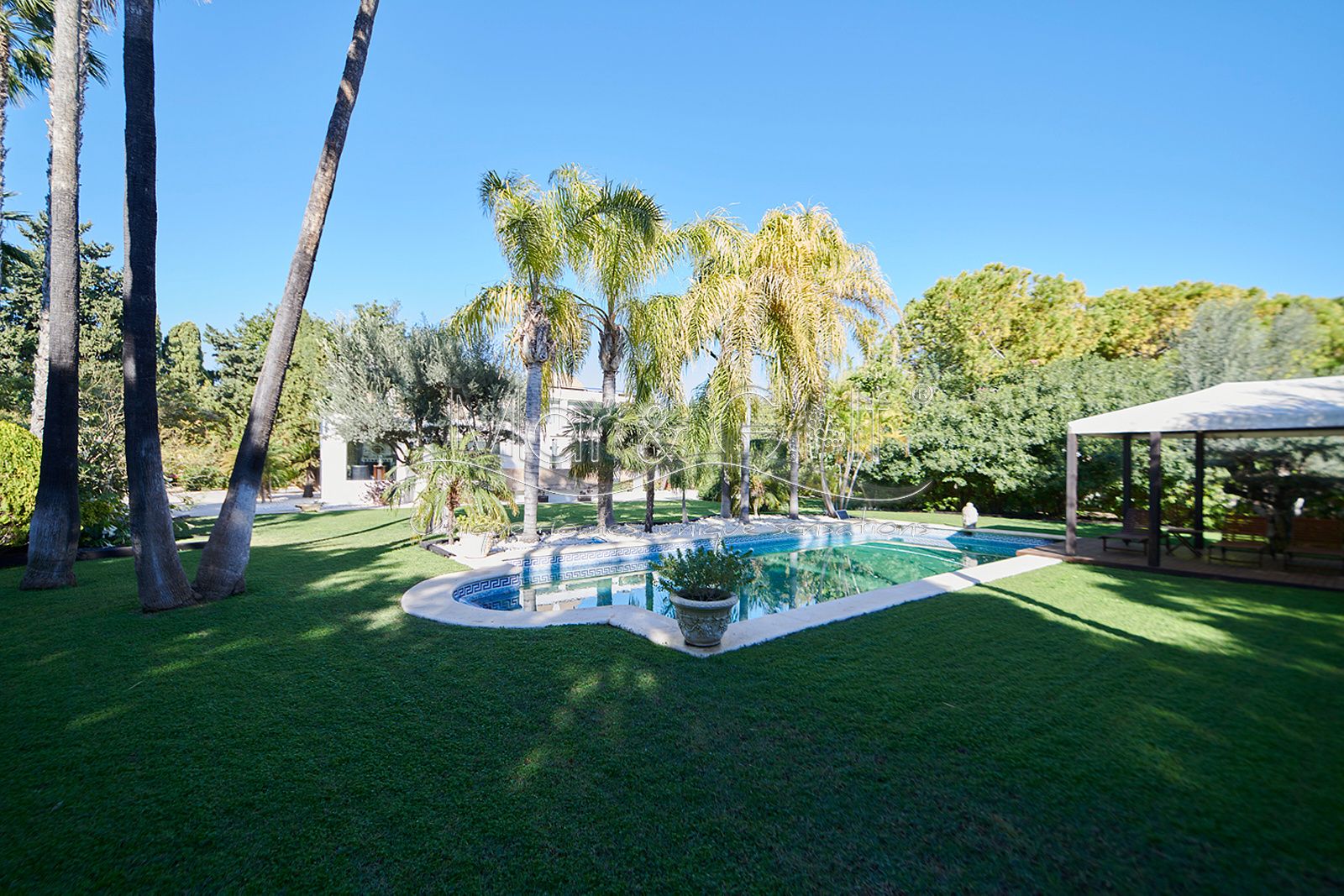 Mar & Golf presenta en exclusiva esta fabulosa villa de lujo en venta en una de las zonas de mayor prestigio y distinción de la ciudad de Alicante. Una joya arquitectónica en el corazón de Alicante Golf, alejada de ruidos urbanos pero a la vez, a pocos minutos de todos los servicios necesarios para la vida diaria.