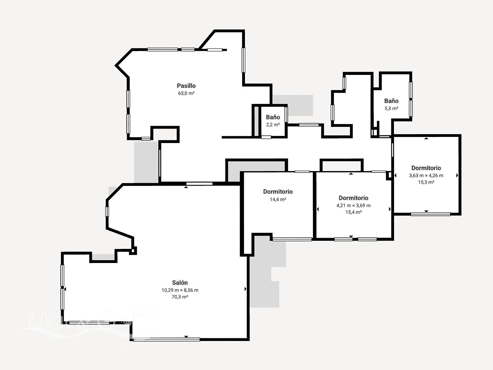 Esta misma planta tiene tres habitaciones dobles con armarios emprotrados y aire acondicionado frío/calor mediante splits, así como dos baños completos con ducha, y un aseo de cortesía.
